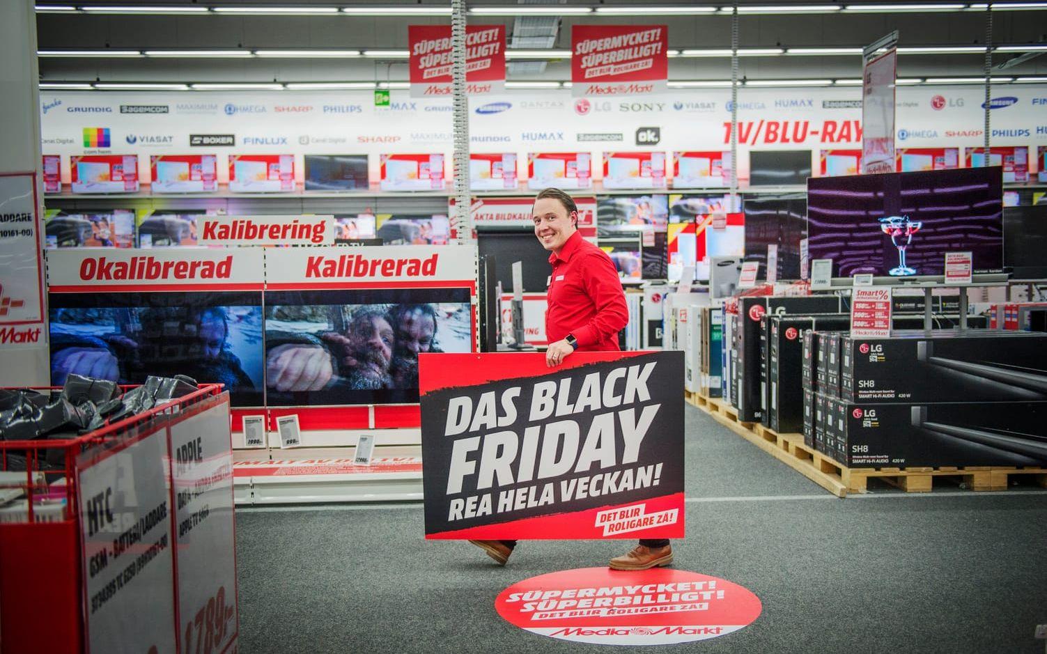 Varuhuschefen Kim Olofsson har förberett sig i månader. Den extra bemanningen är ordnad, de många produkterna på plats och hela lagret fullt med mobiltelefoner, tv-skärmar, tvättmaskiner och dammsugare – det är dags för Black Friday på Media Markt på Torpavallen. I år drar elektronikkedjan igång sin rea i butikerna redan idag, måndag.