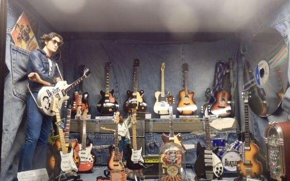 Men "oasen"är inte baraett rum där han skapar.Längs väggarna finns vitrinskåpfyllda med, bland annat, en gitarrsamling i storlek mini,en vilda västern-anläggning och enJapan-anläggning.