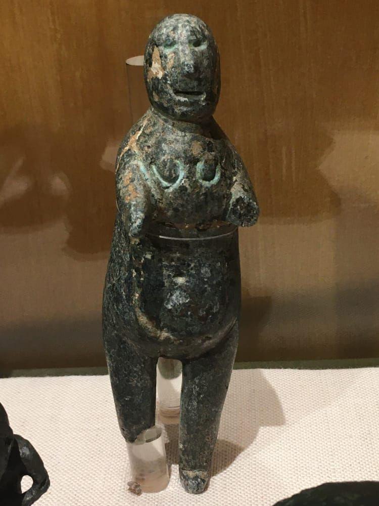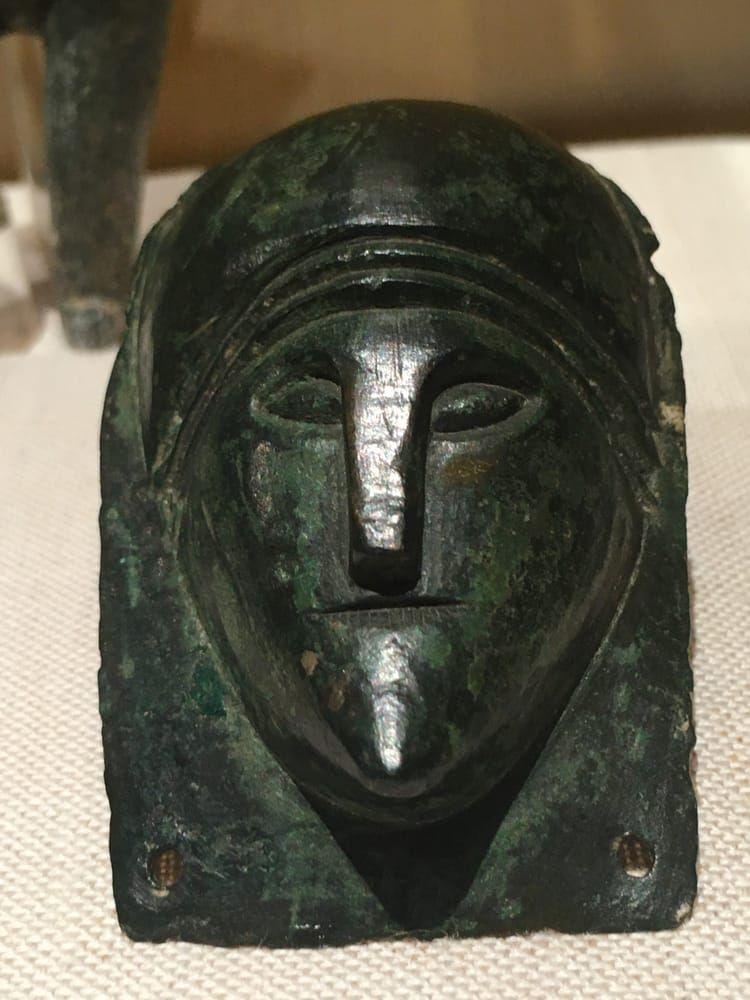 Det där ansiktet liknar en mask, gjuten i brons, meddelar museets arkivhandlingar, men det råder tydligen tveksamhet om figurens kön.