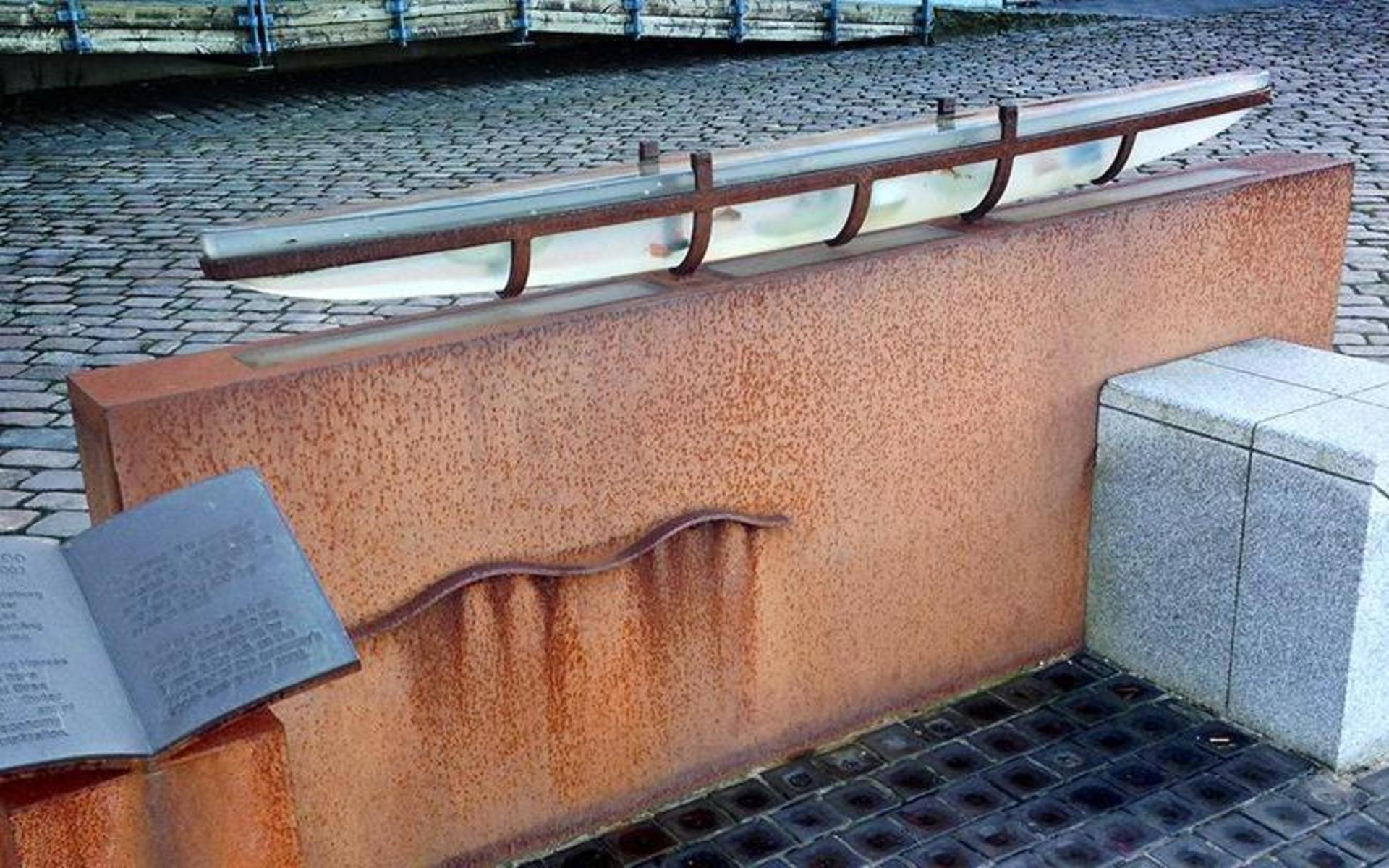 Verket som föreställer en båt har tidigare stått utanför Göteborgsoperan där den stals från sin plats 2014.