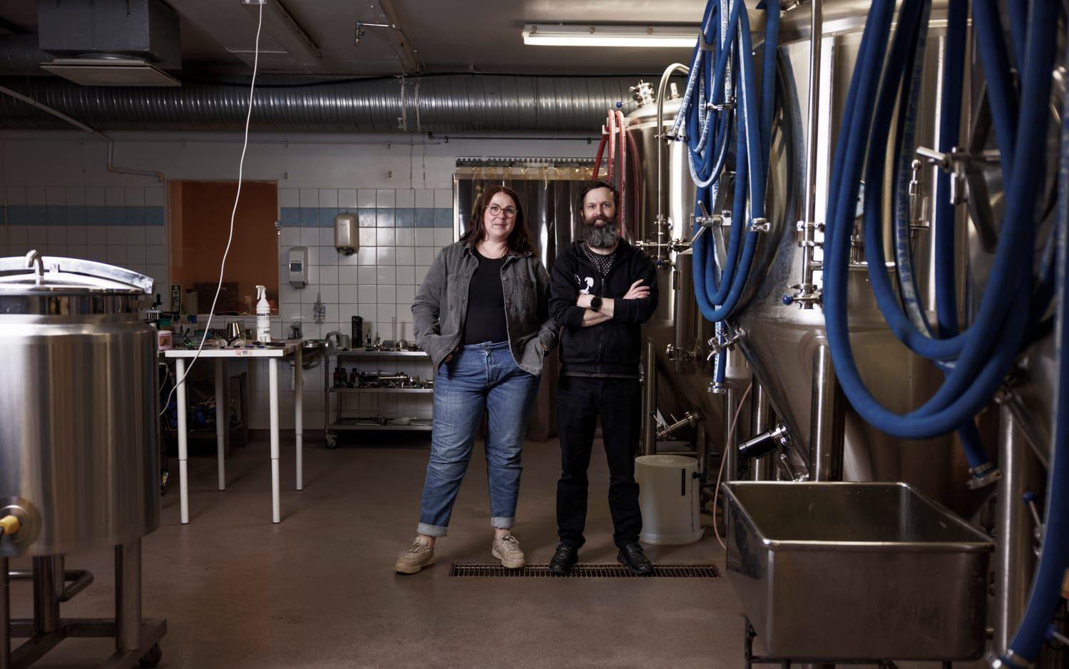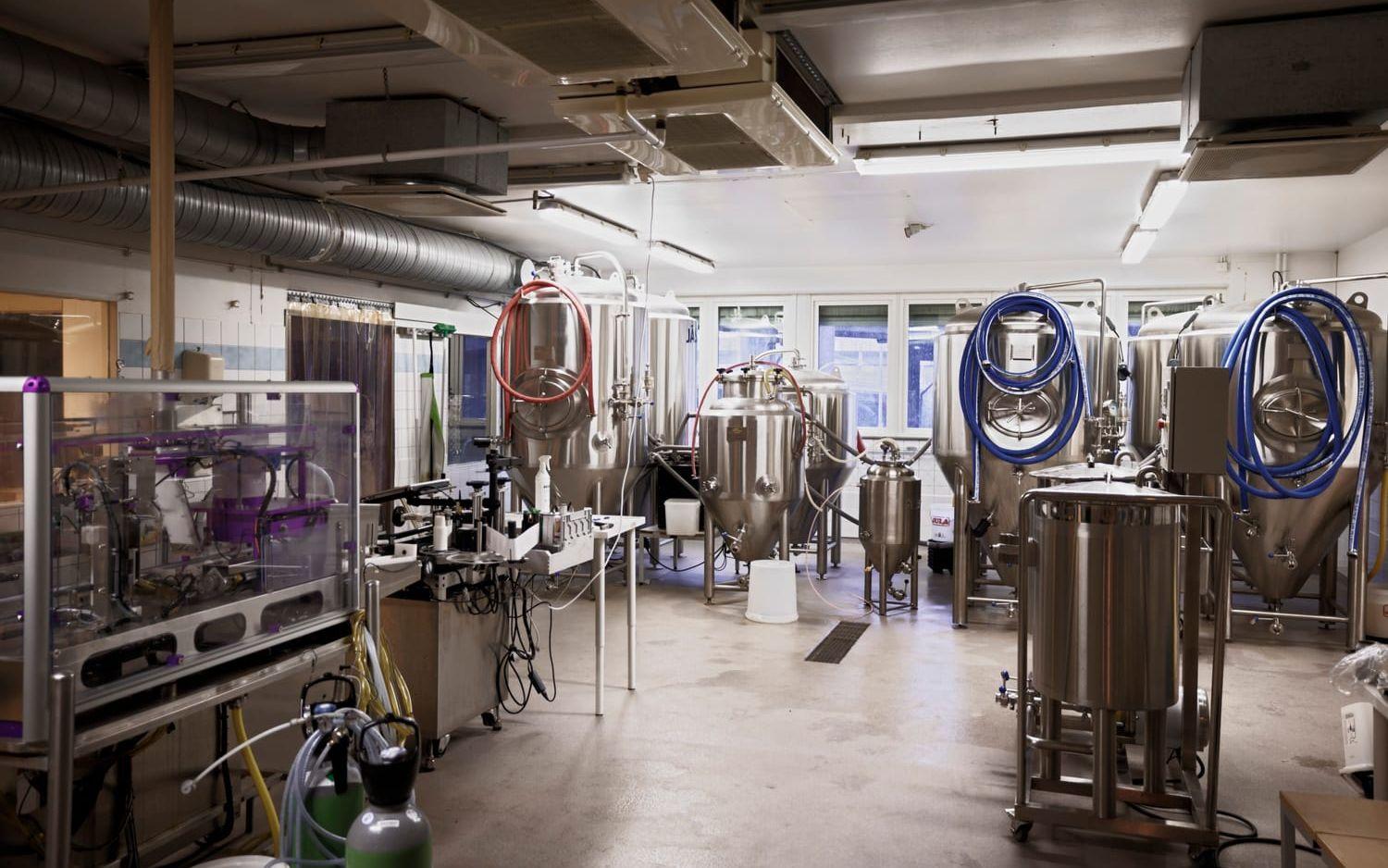 – Först hade vi bryggeriet på 35 kvadratmeter i Floda. Men det blev för trångt. Så för drygt två år sedan tog vi över den här lokalen, som hade använts för köttproduktion. Nu har vi runt 600 kvadratmeter och ett eget taproom, summerar Therese Mortensen.