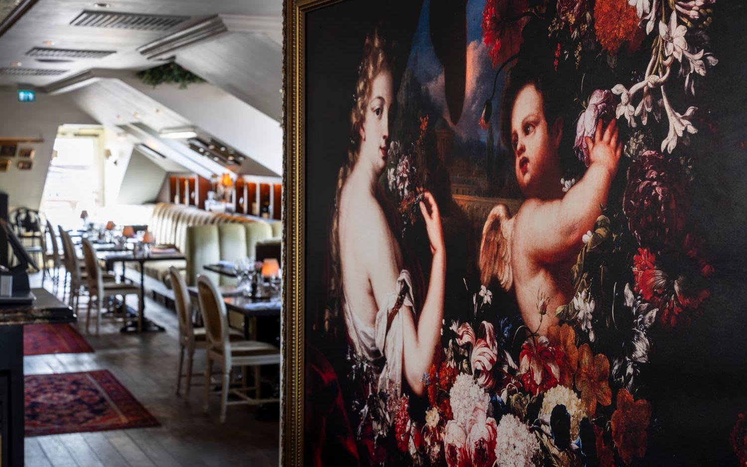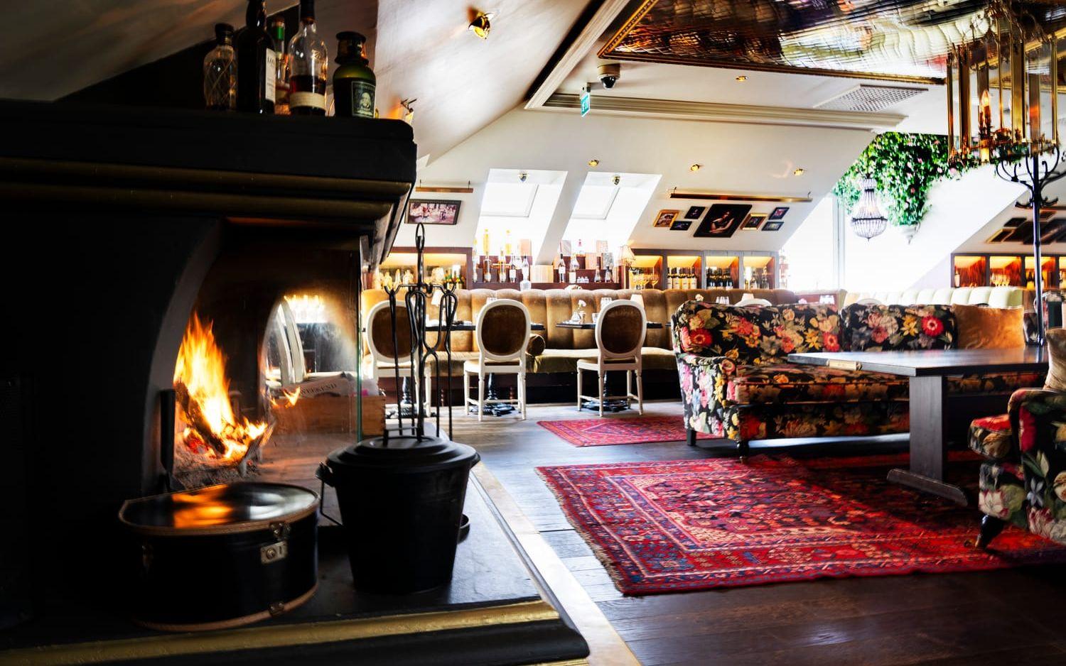 Menyn är begränsad, men utbudet av vin och cocktails desto större och inredningen en romantisk dröm. Inte undra på att hotell Pigalles restaurang Atelier är fullbokad varje Alla hjärtans dag. Denna vardagskväll är det lite glesare i matsalen. Spridda hotellgäster sitter vid småborden längs väggarna. Ett gäng i de blommiga sofforna som bildar ett eget vardagsrum nära den sprakande brasan. Det är bara någon minut sedan vi tog hissen upp till vindsvåningen från hotellfoajén, men redan känns Brunnsparkens folkliv långt borta.
