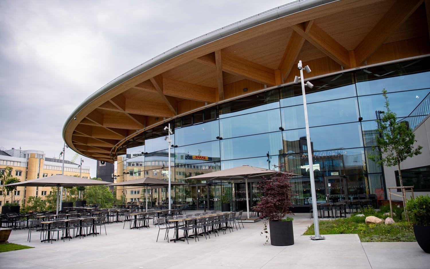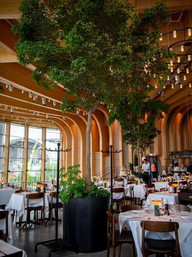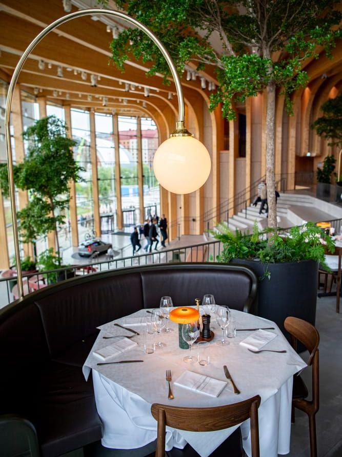 Låt oss börja med lokalen. World of Volvos runda, vackra byggnad i trä och glas är helt unik, och på andra våningen, med fönsterbeklädda väggar från bottenplan till tak, ligger alltså Ceno Brasserie.