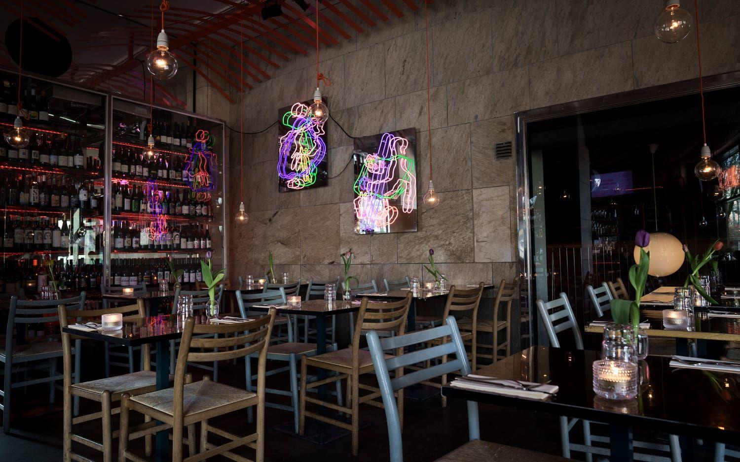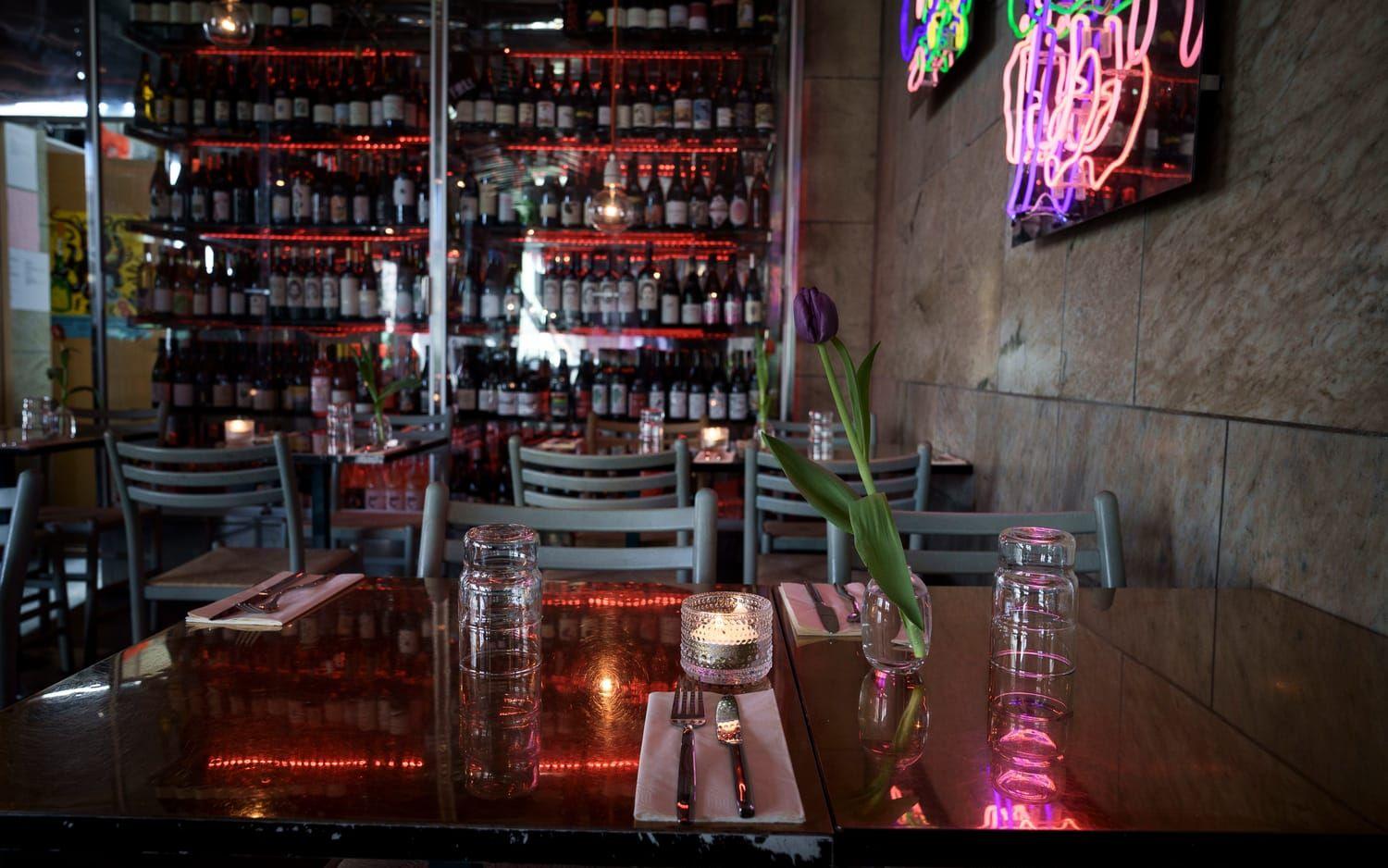 Här finns hela världen på menyn. Franska ostron. Japanska tofubollar. Sydafrikanska majsbröd. Portugisisk torsk. Baskisk ostkaka. Det är bara på helgerna som alla rätter är tillgängliga, upptäcker vi. Men ostron (15 kr styck) finns alltid. Vi tar tre var, med härlig sälta och perfekt konsistens. Till det ett friskt vin på riesling och grüner veltliner (110 kr). Kul att det finns ett ställe i stan där man kan få färska ostron och ett glas vin till hyfsat pris.