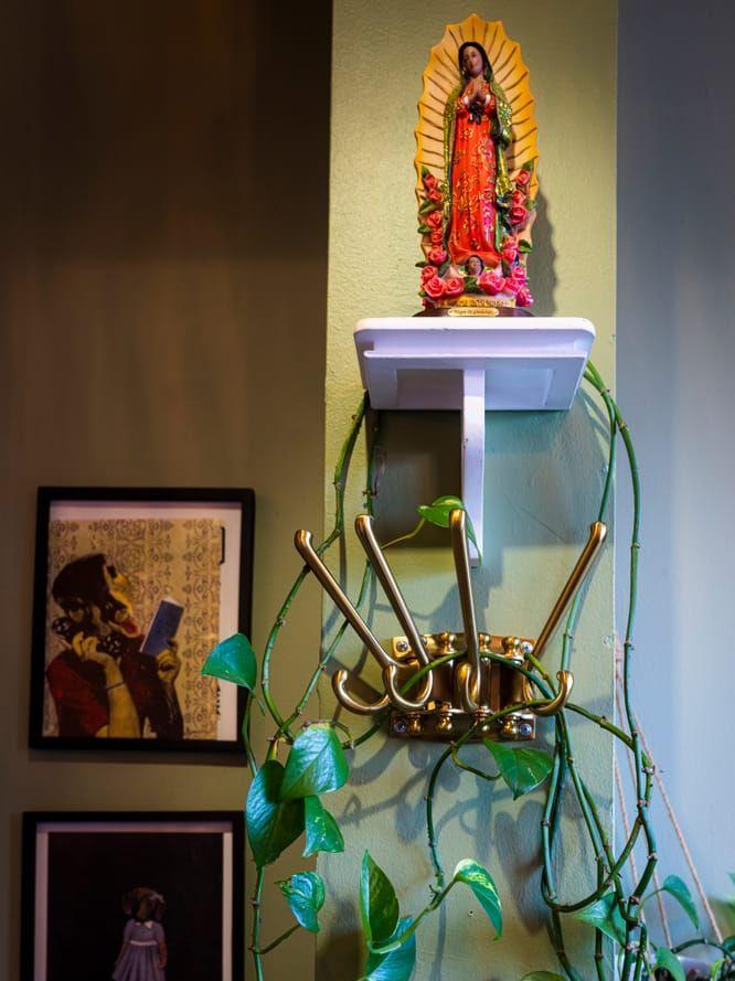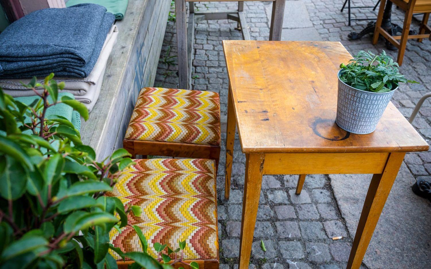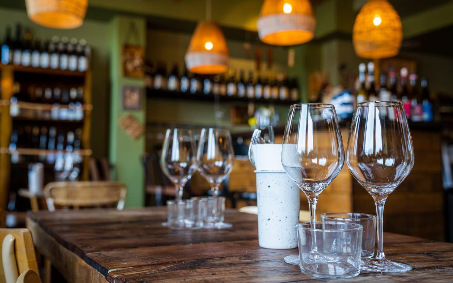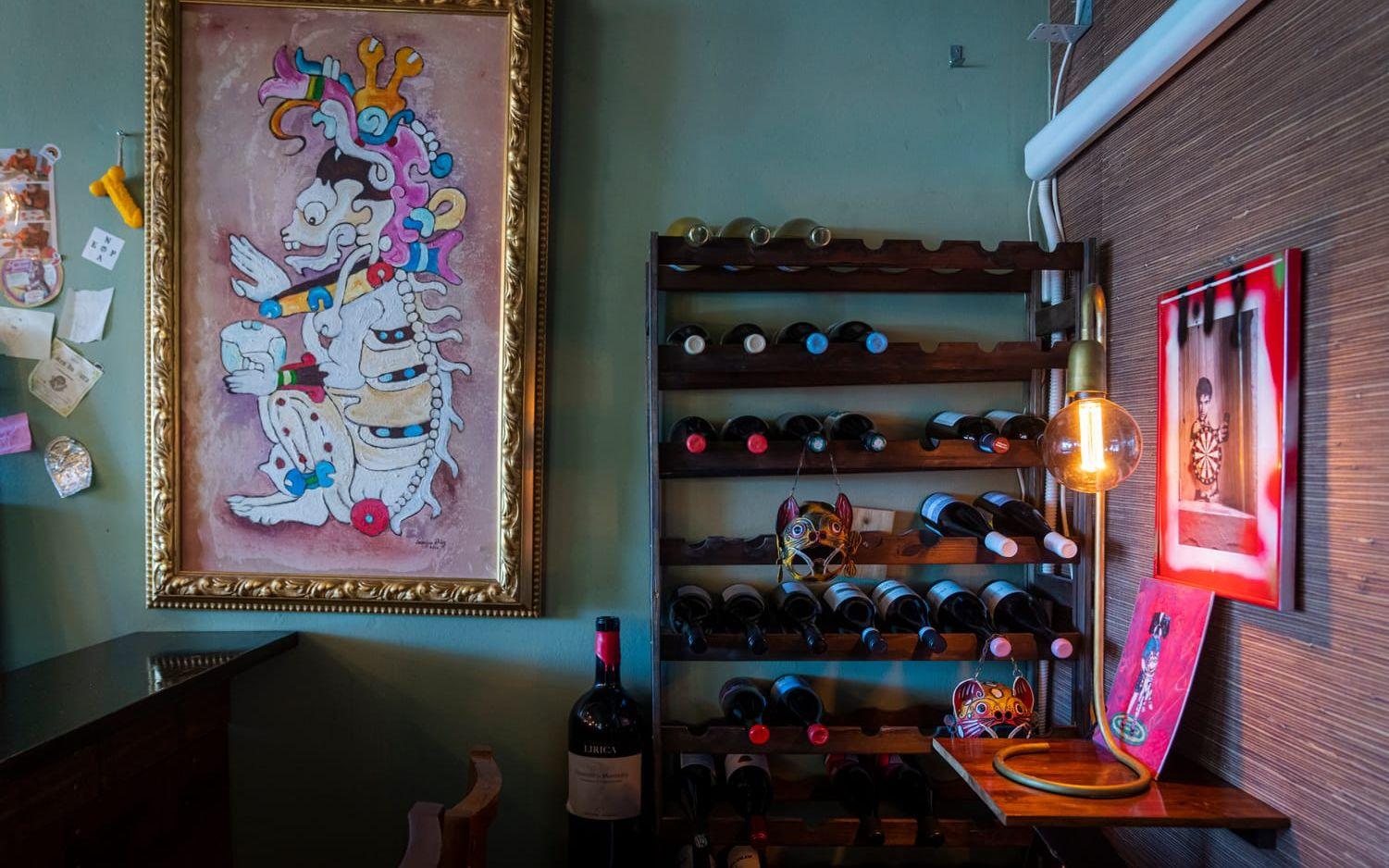Miljön är omedelbart välkomnande. Orientmattor på golvet, rustika bord och öppna vinhyllor längs väggarna, lampor med skärm, loppisfynd och prylar som kan ha hängt med hem efter en backpackertur. Vi har inte varit här tidigare, men känner oss ändå hemma denna vardagskväll.