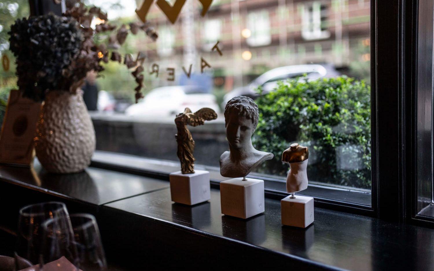 Den distinkta lokalen kommer med ett arv: under mer än två decennier drev Håkan Thörnström här en av Göteborgs allra bästa restauranger. Matsalen känns igen, men är också uppdaterad och egen. Visst ser vi en och annan byst i antik stil på fönsterbrädet, men restaurangen är fri från turistfälle-Grekland: inga fejkslitna muralmålningar av Santorinis vita tak, inga foton på Akropolisklippan. Bara en stillsam inbjudan till ett nischat kök.