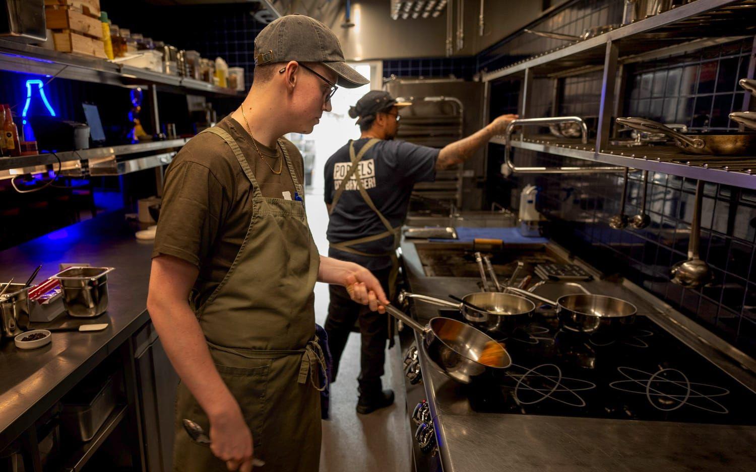 Här möts vi av vänlig personal i en matsal med stora ekfat. Där lagras krogens huspilsner som bryggs på plats, övriga öl tas från bryggeriet i Jonsered. De 16 fatölen går föredömligt att få i små 15 centiliters-glas, perfekt för oss som vill testa flera. Det lätta husölet får därför sällskap av en Glögg Sour med smak av mörka bär och glöggkryddor, en fin aperitif.