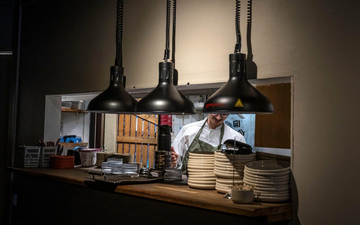 Vår kväll börjar dock i väntan. Efter att ha beställt varsin femrättersmeny (497 kr per person) dröjer det tjugo minuter innan vi serveras våra inledande drinkar, en habil Juniper fizz (139 kr) och en cocktail på mandarin, timjan och mezcal (139 kr). Därefter tar det nästan ytterligare trettio minuter innan förrätten kommer ut. Vi har inte bråttom, men för den stressade eller hungrige är det förstås i överkant.