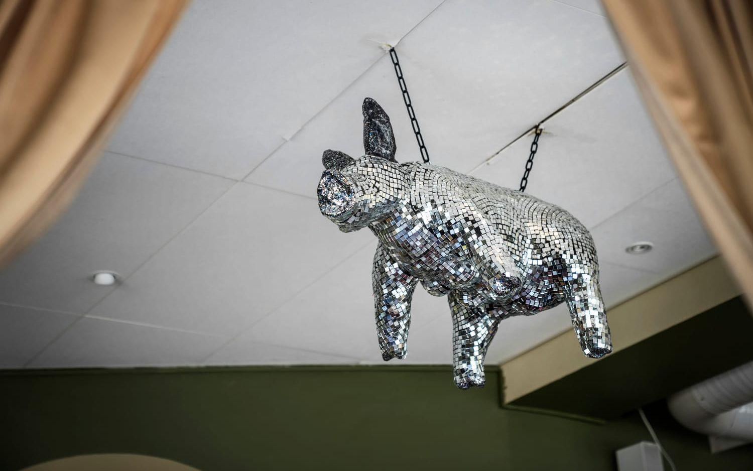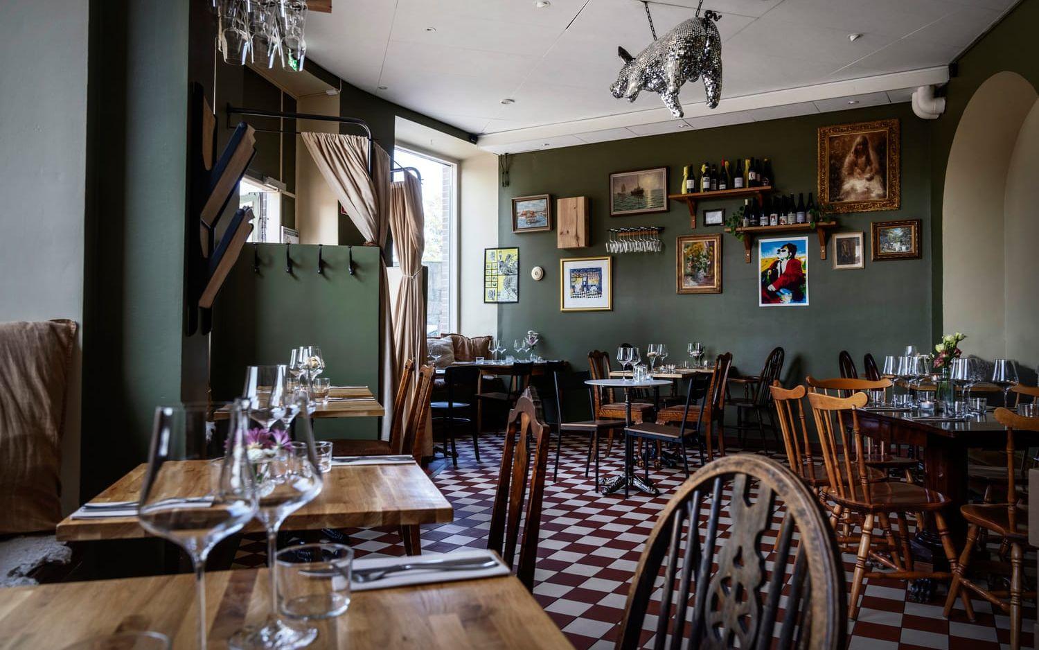 Vid vårt besök drar sommaren en sista suck, göteborgarna har tagit sista chansen att ockupera stans uteserveringar och kanske är det därför stället knappt är halvfullt när vi gör entré. Vi blir genast på gott humör av det schackrutiga golvet i rött och vitt, de mossgröna väggarna och discogrisen i taket.
