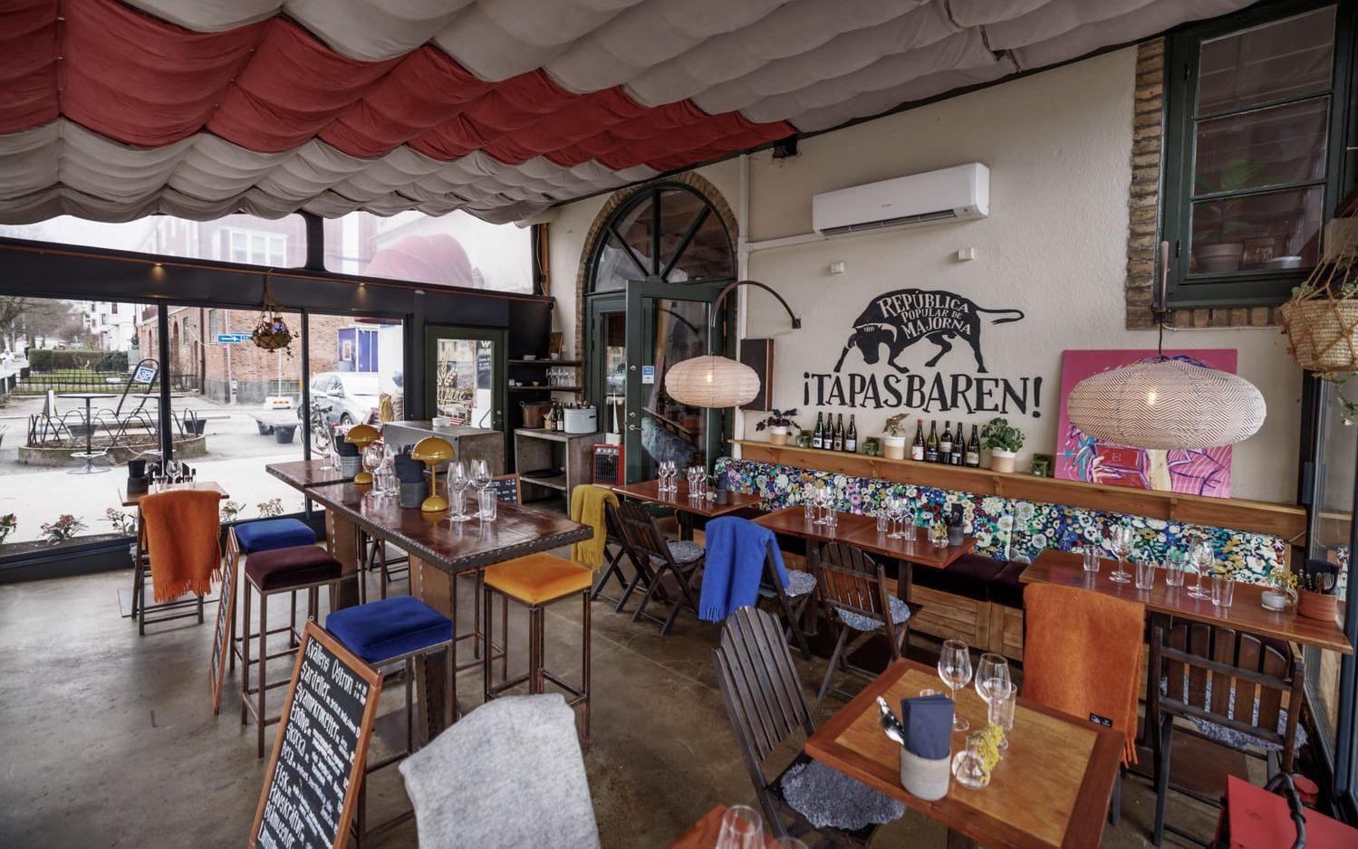 Våren har äntligen kommit till Göteborg, uteserveringspremiären avverkades vid lunch och samma kväll har chefen beordrat en att gå och äta tapas. Förutsättningarna är alltså goda när vi styr stegen mot Tapasbaren som, efter sin pånyttfödelse för sisådär tio år sedan, nu står stadigt på sitt hörn på Mariagatan. Den spanska profilen till trots – med tjuren och slagorden "Republica popular de Majorna" – lutar menyn mer åt smårätter med svenska råvaror.