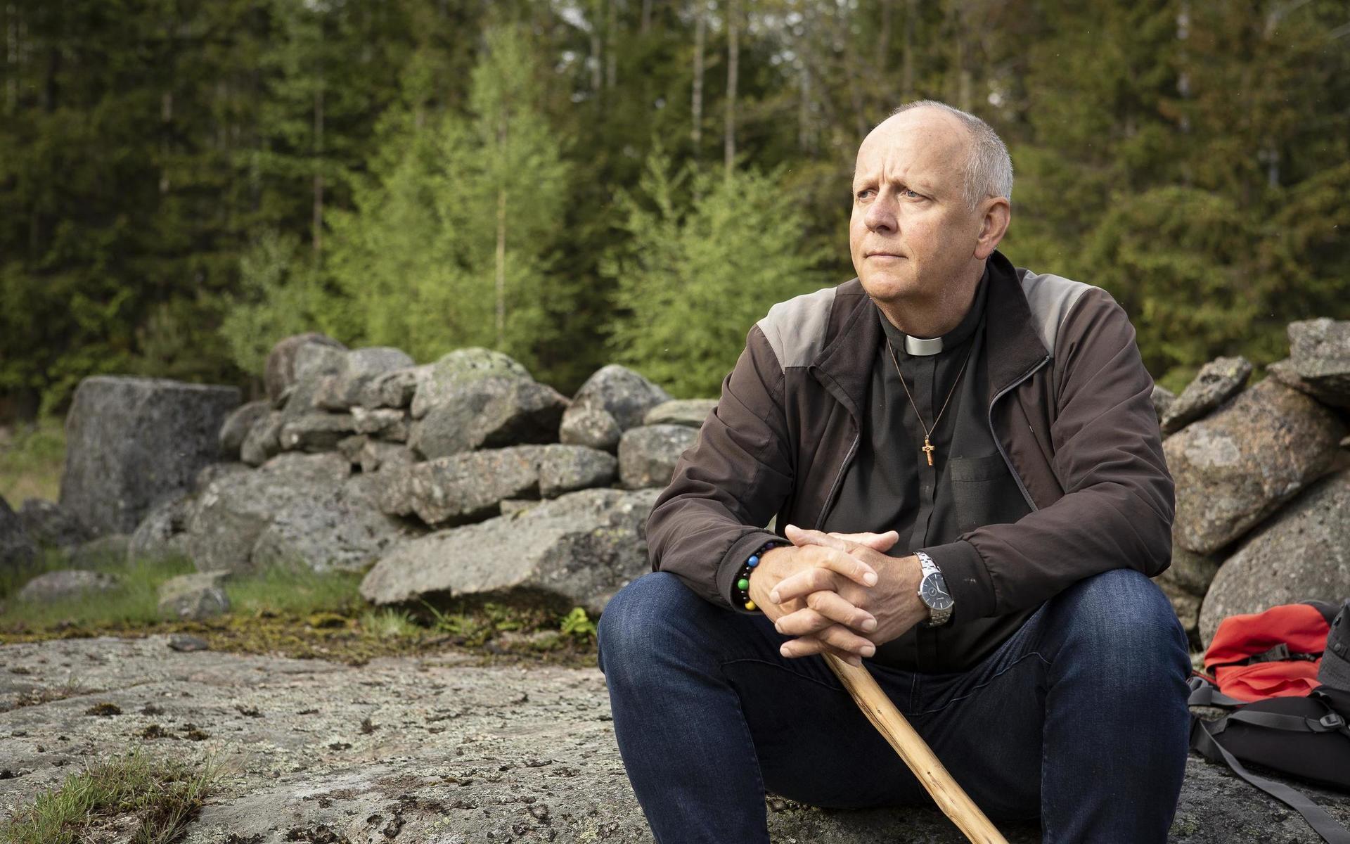 – Att möta en präst som kommer ut bland folk på det här viset, det öppnar upp människors önskan att prata om tro och tvivel. Jag har likadana regnkläder och stövlar som alla de andra. Det är ingen skillnad på oss och då blir det lättare att prata om existentiella frågor, säger han.