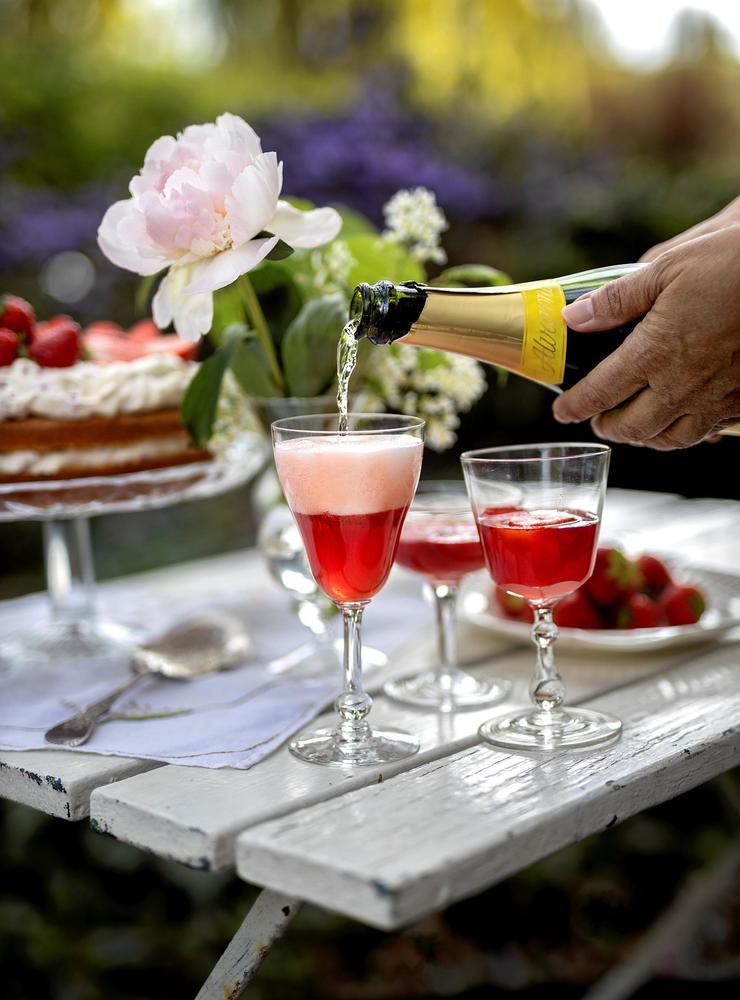 Frisk och syrlig drink som antingen kan inleda sommarmenyn eller avnjutas till den pampiga jordgubbstårtan. Prosecco med sin fina sötma passar bäst till.