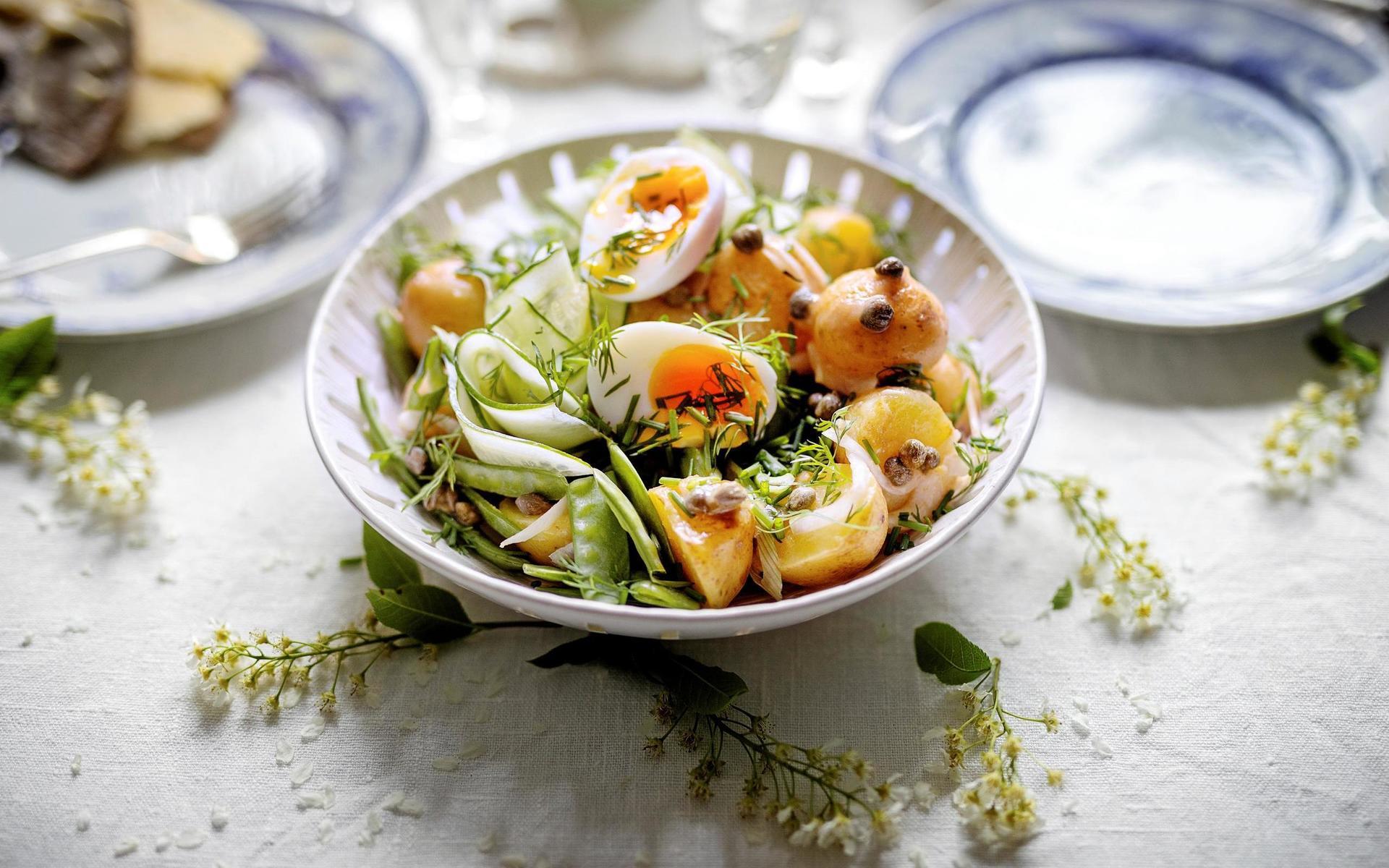 Recept: Varm färskpotatissallad med brynt smör och örter