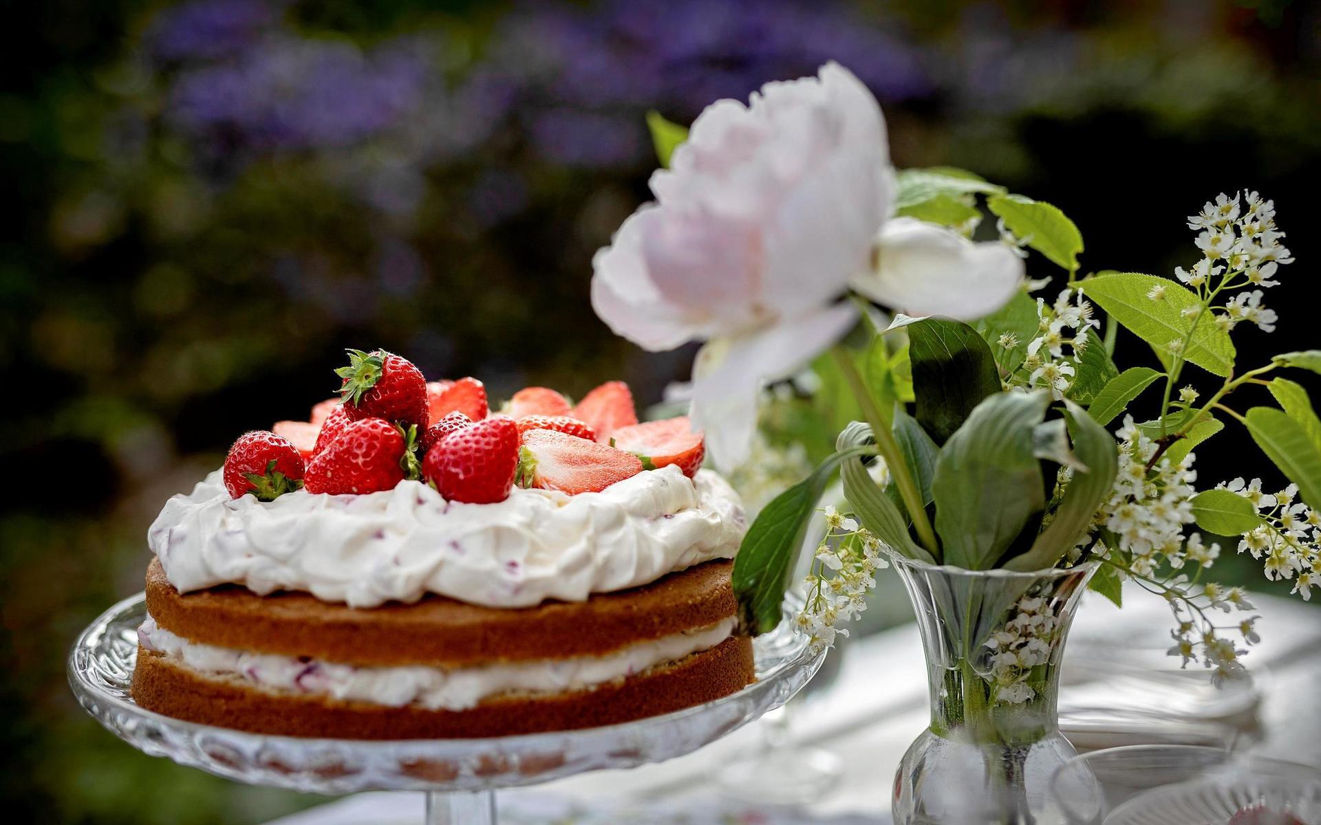 Den oväntade ingrediensen mandelmassa, i sockerkaksblandningen, gör kakan extra saftig och hållbar. Jag har även hackade jordgubbsbitar i grädden för att ge tårtan maximalt med smak av solmogna jordgubbar.