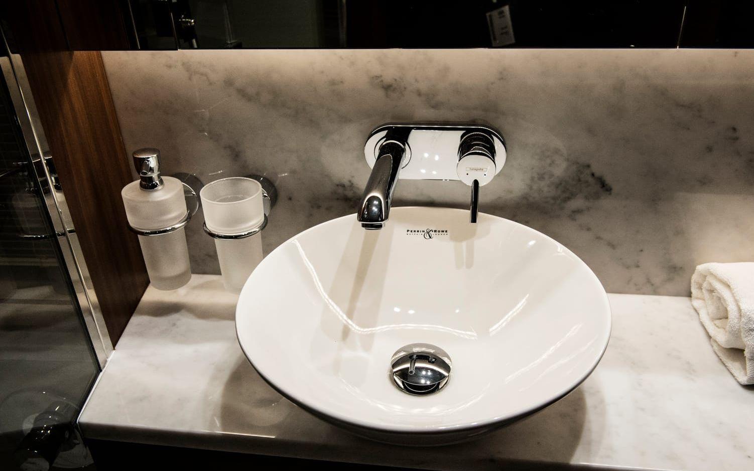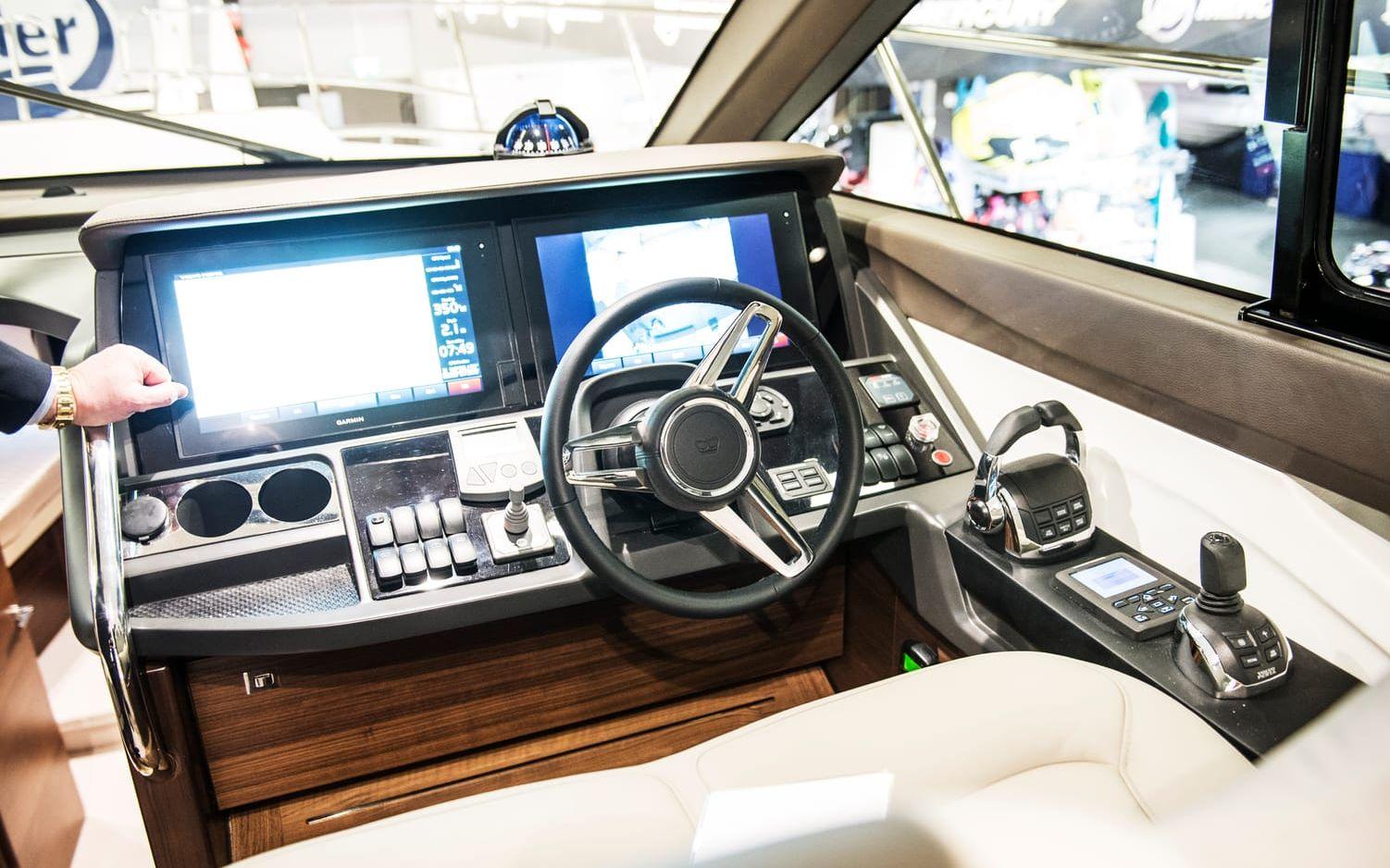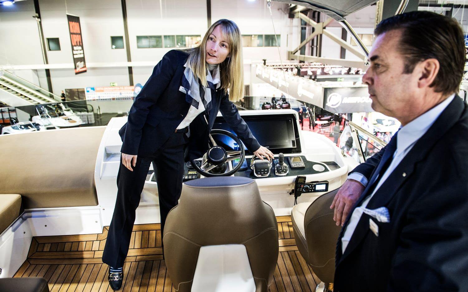 Båtmässans största motorbåt är en Princess 49, en drygt 15 meter lång båt, med allt man kan behöva för en tur på havet. Båtens storlek skapade problem när den skulle in på Svenska mässan. Men med två centimeters marginal kom den in.