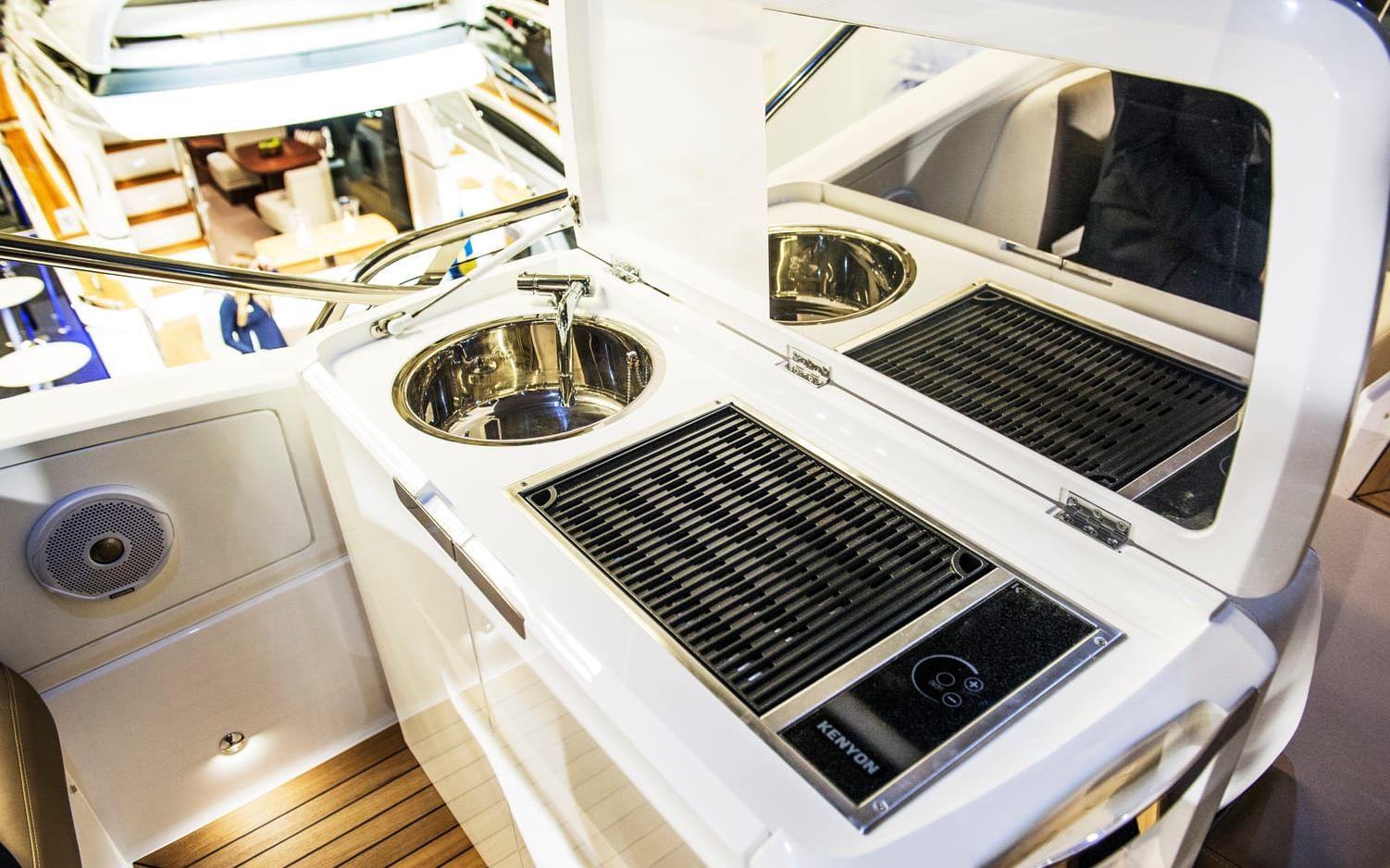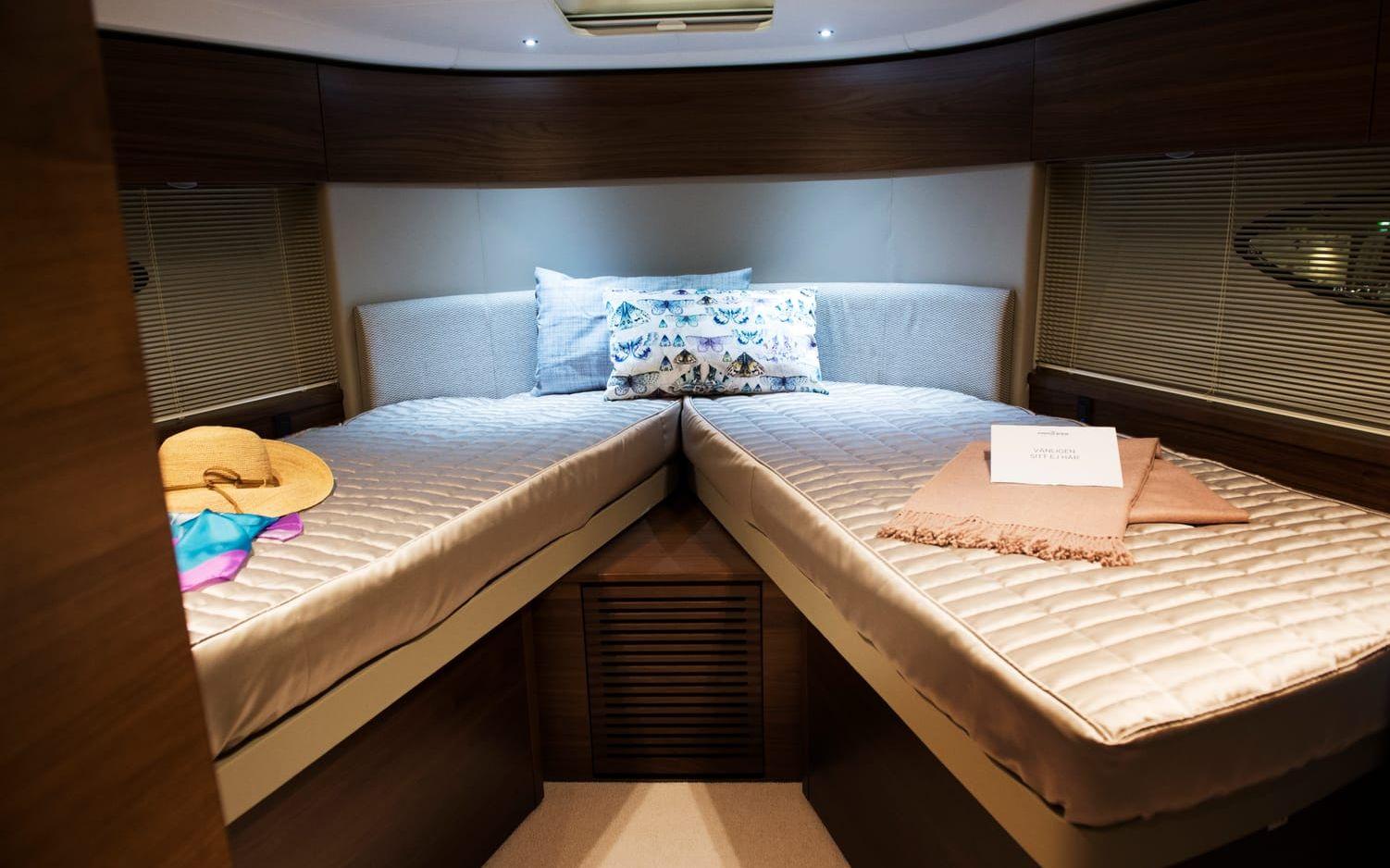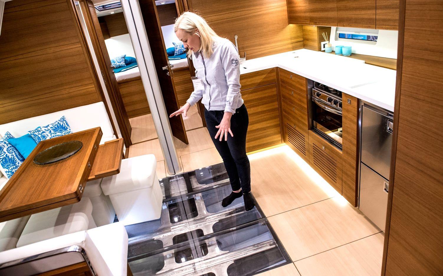 Lars Falkeskog visar runt på den sprillans nya båten som redan har fått en ägare. Båten kommer att ha västkusten som hemmahamn. Här finns tre kabiner med heltäckningsmatta och badrum med dusch, ugn, micro, ismaskin och flera kylskåp. Blir du sugen på att grilla när du är ute till havs är det inga problem, här finns en grill på flybridge. En Princess 49 kostar mellan 8,5 och 10 miljoner kronor. Men det finns ännu dyrare båtar av samma märke, den dyraste ligger på cirka 200 miljoner kronor och är 40 meter lång.