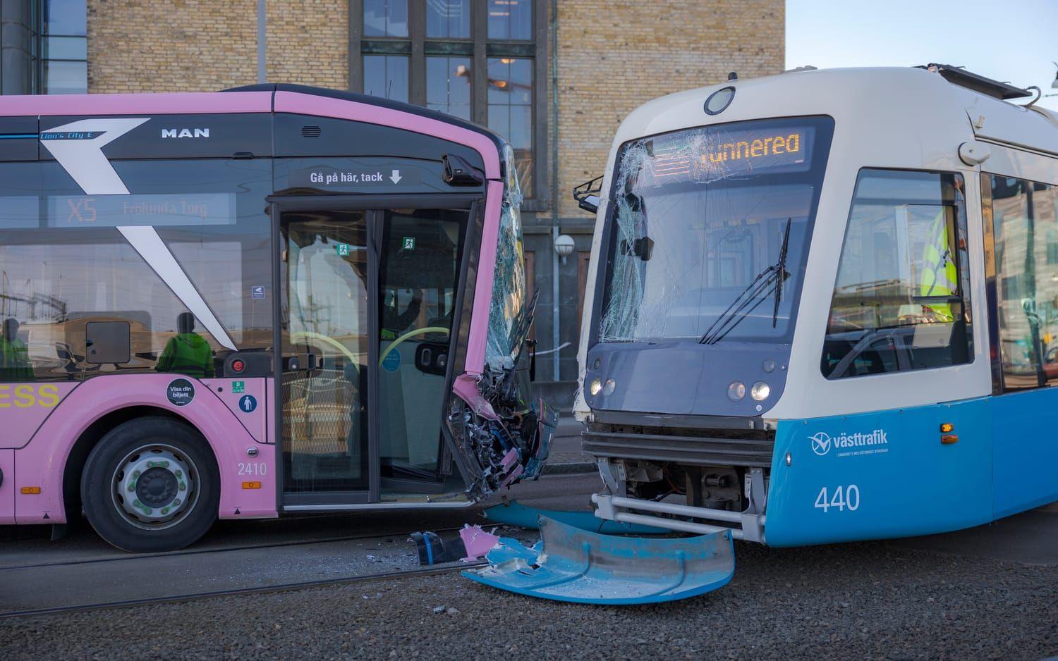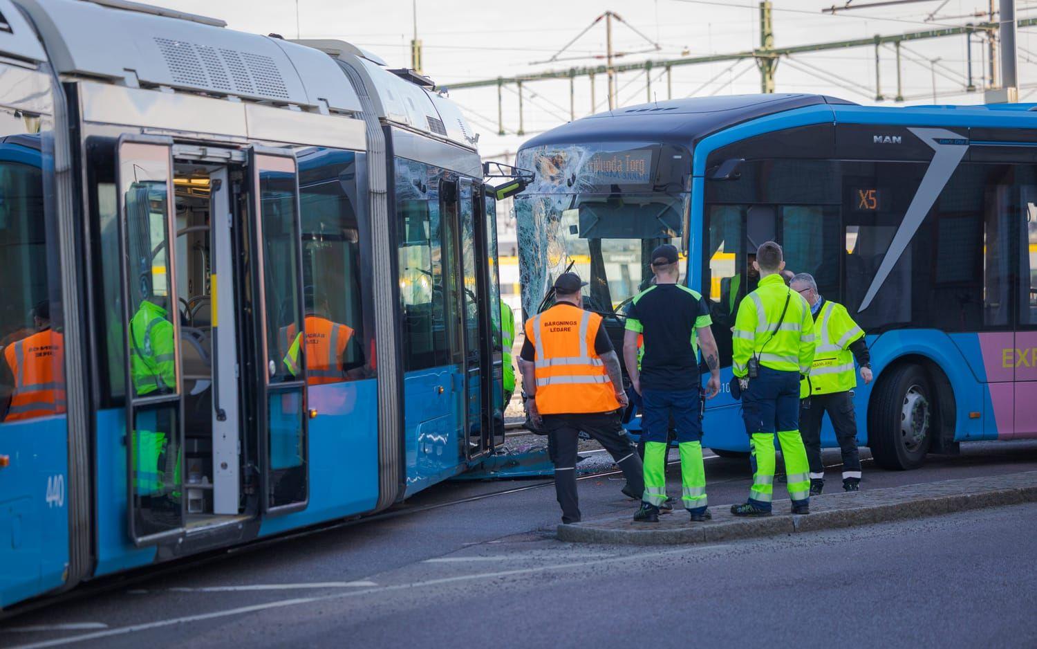 Krocken mellan bussen och spårvagnen inträffade strax före klockan 09 på onsdagsmorgonen.