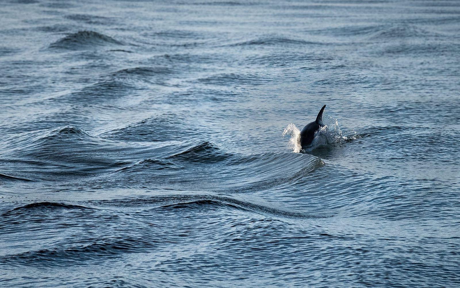 Fredrik harsjälv simmat med delfiner i Mellanöstern och tyckte sig känna igen det han nu såg som en delfin snarare än tumlare.