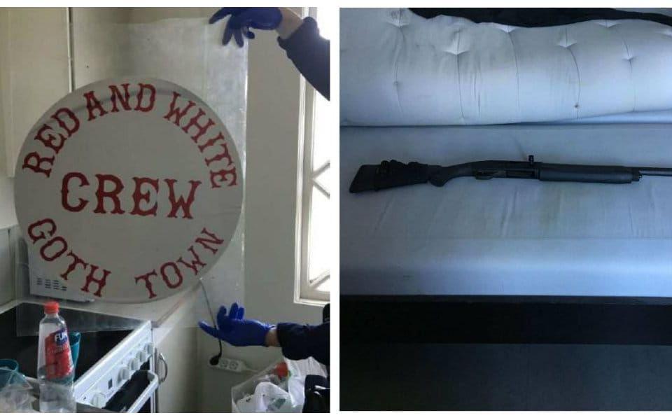 Vid husrannsakan påträffades jackor och tröjor med anknytning till mc-gänget. I hallen hängde en väst med emblem.