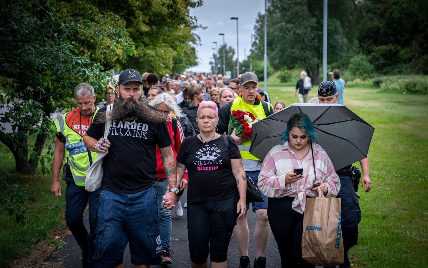 Flera hundra människor samlades under tisdagskvällen för att promenera tillsammans mot våldet i Biskopsgården. Polisen hjälpte till att hålla vägen fri för de deltagande som leddes av Viktoria Sikström som tog initiativet till samlingen via Facebook.