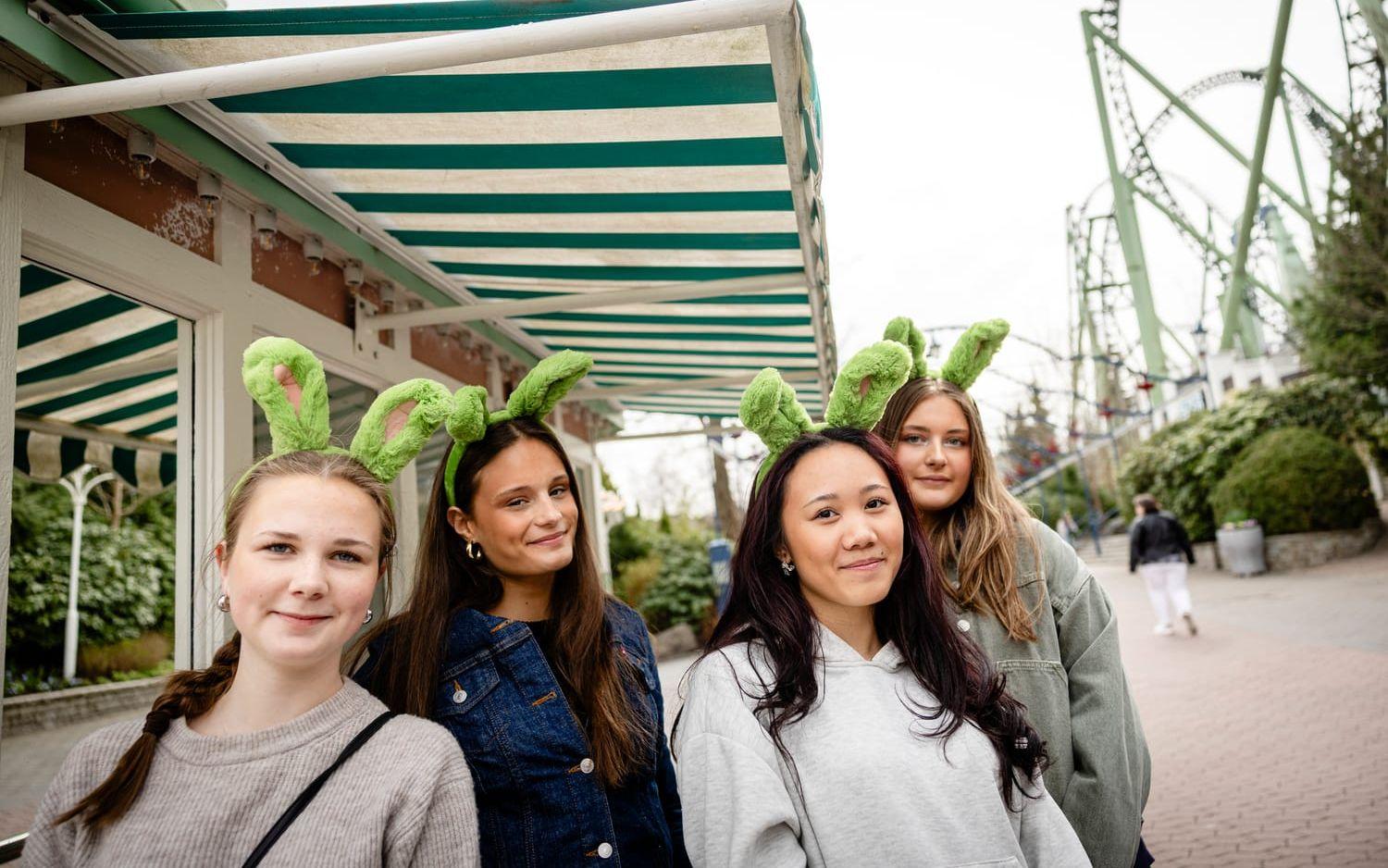 Tjejkompisarna Linnea Davås och Elize Chiu har tillsammans med sina vänner satt på sig de karakteristiska gröna och rosa kaninöronen. Helix har de redan checkat av och de har också få tag på lite lördagsgodis.