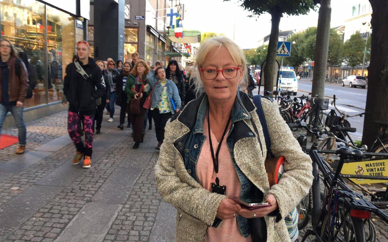 – Vi måste få kärlek på våra gator som tar över staden. Kärlek övervinner allt, så är det faktiskt, säger Bibbi Moland, som också gick tåget.