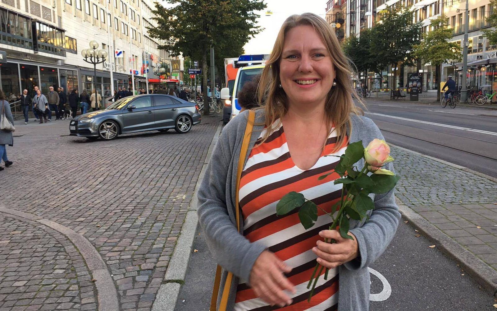 – Jag blev ledsen och förtvivlad när jag hörde att nazister demonstrerade i Göteborg igår. När jag såg det här eventet ville jag vara med och visa att alla människor är lika mycket värda, säger Matilda Sten.