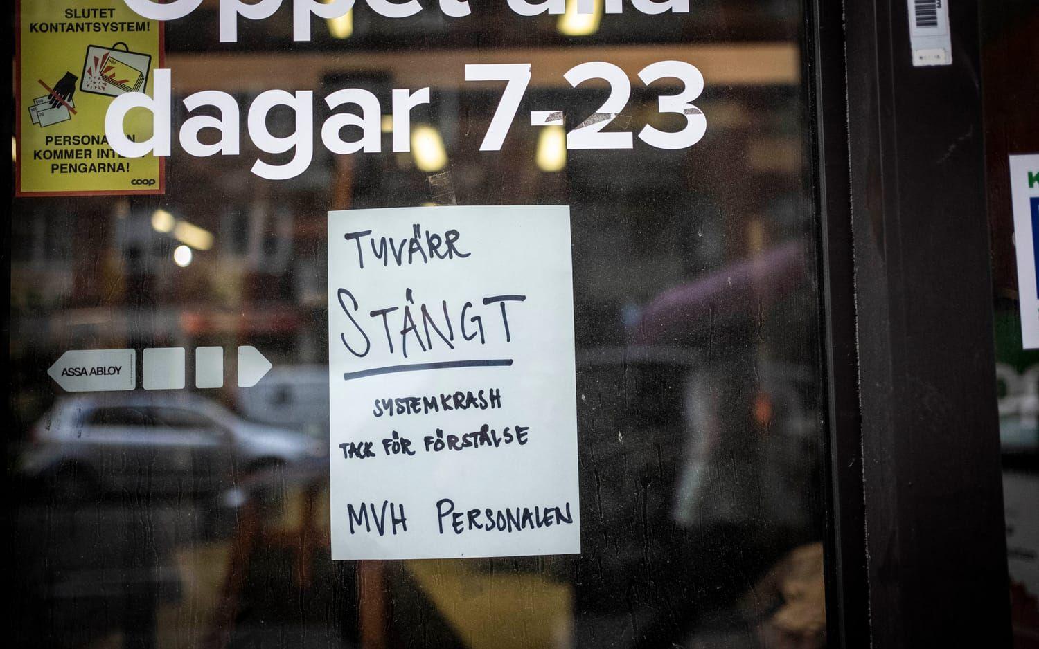 Även på Coop på Friggagatan har haft problem under onsdagen och även de satte upp en lapp om att butiken höll stängt på grund av ”systemkrasch.”