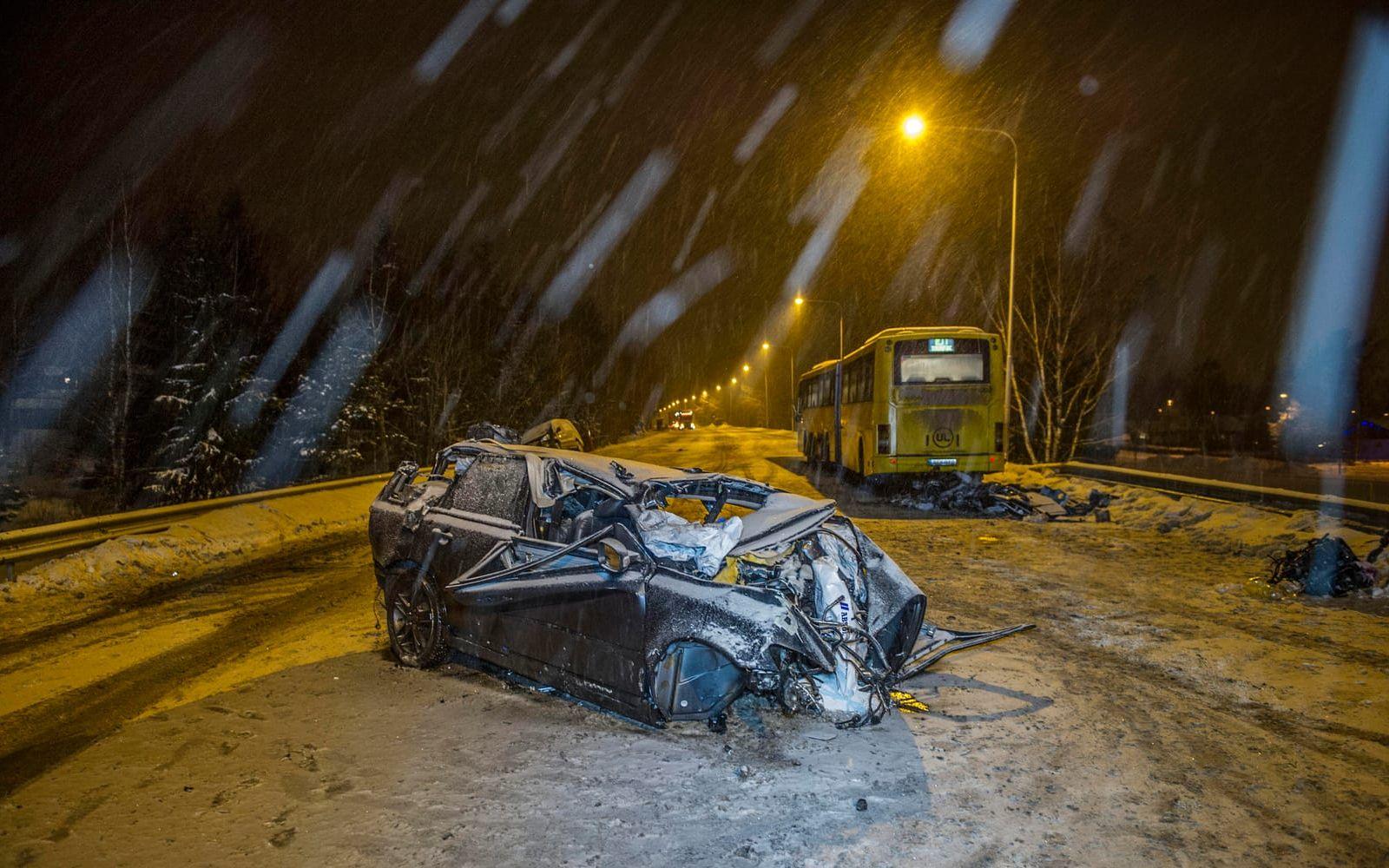 - Personbilen ska göra en omkörning och köra om bussen men ser inte att tankbilen kommer i mötande körfält så det blir en frontalkrock. Det är så pass att tankbilen sedan pressar in personbilen framför bussen, säger polisens presstalesperson Linda Wideberg till TT.