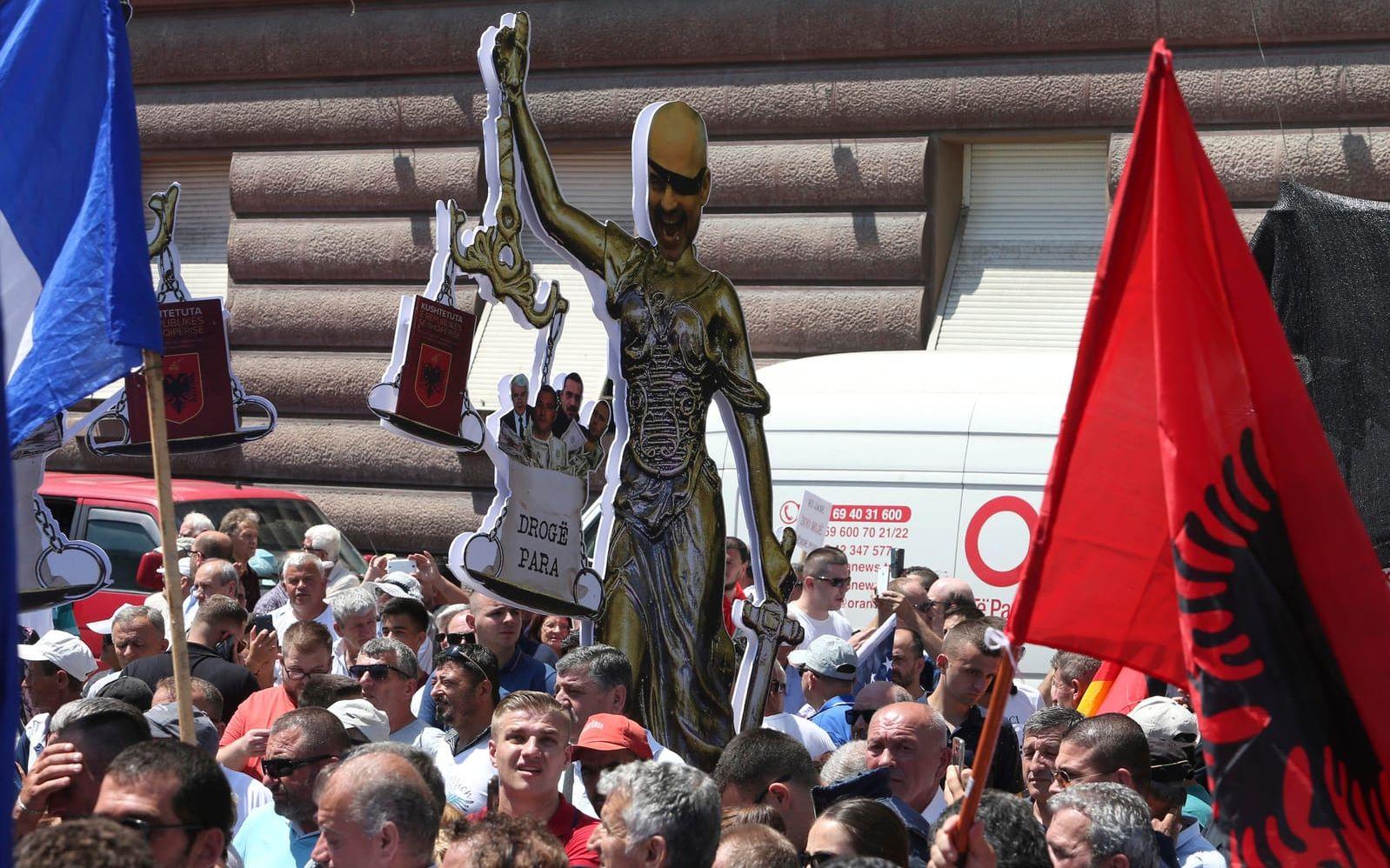 Enligt demonstranterna, som även kräver premiärminister Eli Ramas avgång, har brodern med hjälp inrikesministerns inflytande kunnat fortsätta bedriva narkotikahandel. Oppositionen har nyligen offentliggjort en ljudinspelning där en man presenterar sig som inrikesministerns bror och tycks prata med vad som tros vara smugglare.