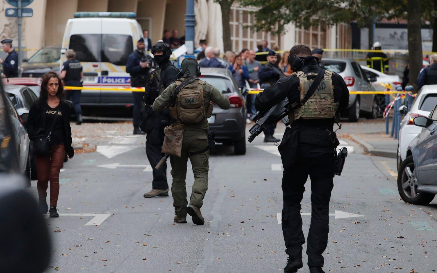 Attacken ägde rum nästan på dagen tre år efter att den franske läraren Samuel Paty dödades och halshöggs av en radikal islamist i Conflans-Sainte-Honorine väster om Paris.