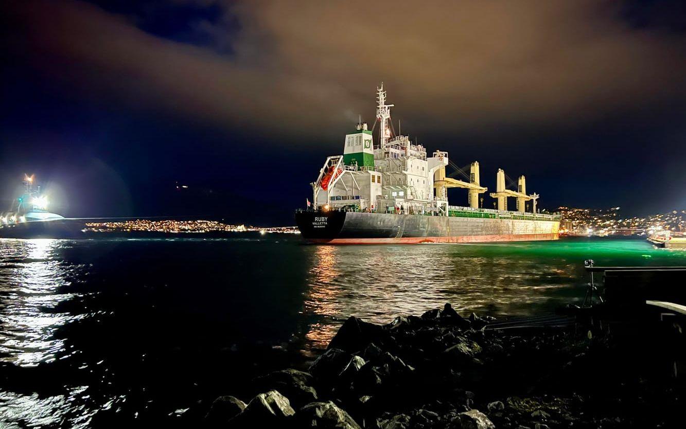 Det var i början av september som MV Ruby gick på grund i samband med lastning i en rysk hamn på Kolahalvön. Fartyget fick skador på propellrar och roder och sökte nödhamn i norska Tromsö. När fartyget ankrade i Tromsö upprättade norska myndigheter en skyddszon på 500 meter på grund av lasten.