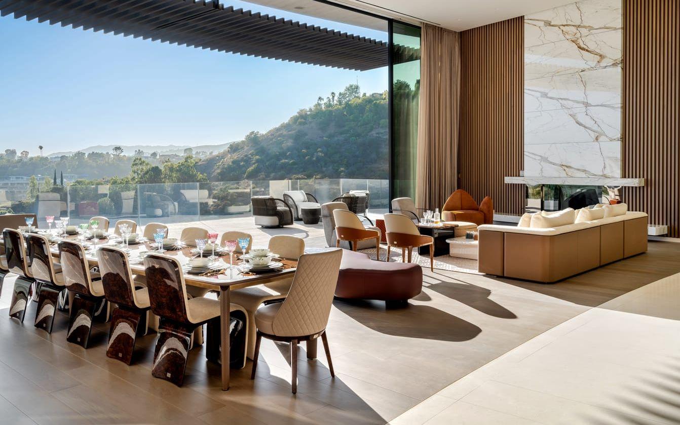 För nästan två miljarder kronor kan man förvänta sig en hel del i hemmet. Och det finns en hel del, som till exempel tio sovrum och 23 badrum, ett tempererat vinrum för 2 000 flaskor, avsmakningsrum, kontor med stor terrass, två hissar, bar, nio öppna spisar, två kök, vardagsrum med två öppna spisar i marmor och många säkerhetskameror.