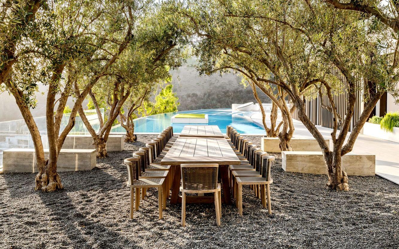 Kliver man ut från huset hittar man inte direkt någon trädgård då huset är byggt på pålar, men det finns ändå flera gräsmattor anlagda, samma med träd och buskar. Däremot finns det ingen brist på sittplatser på utsidan vid poolen och jacuzzin. Och vill man se på film när man badar i poolen är det inga problem, för där finns en stor svängbar tv.