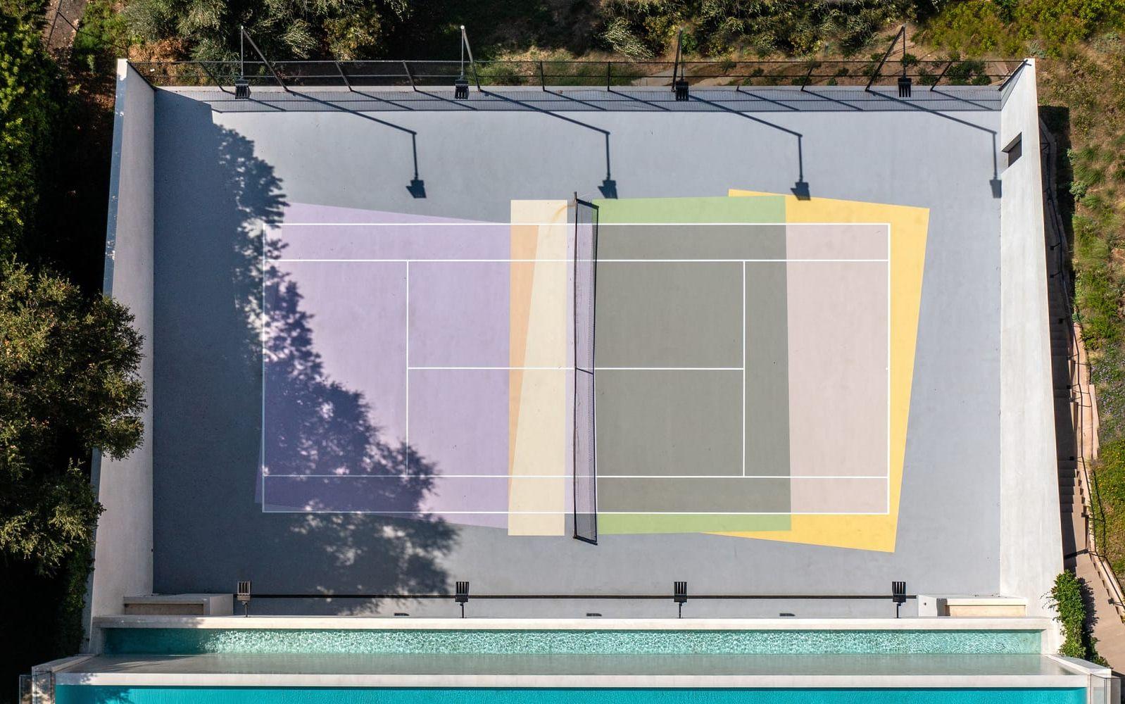 Gäster på besök har ett eget gästhus att bo i med två sovrum, gym, stor terrass, egen pool och bli de sugna på att ta en tennismatch ligger en upplyst tennisbanan bara några trappsteg från gästhuset.