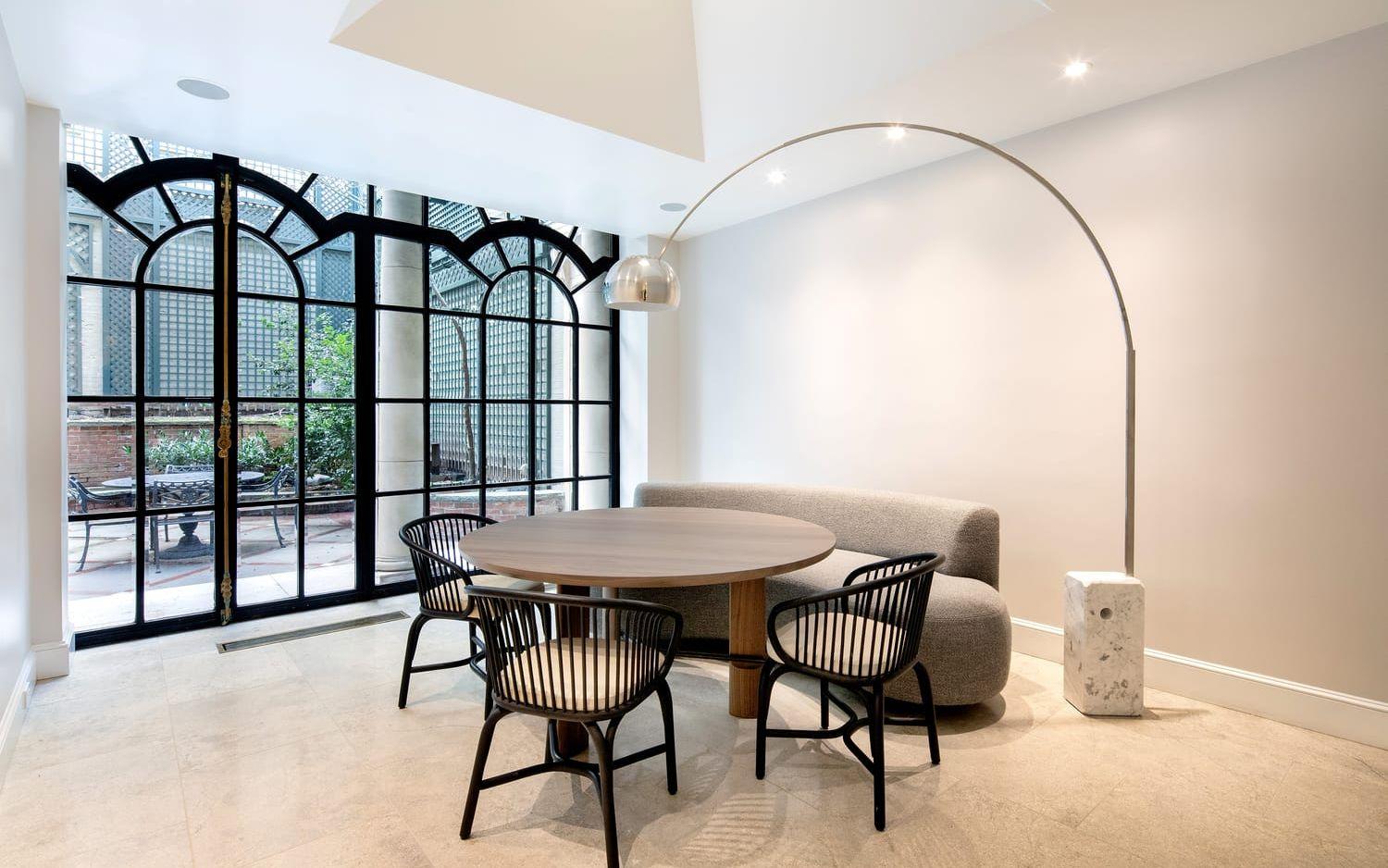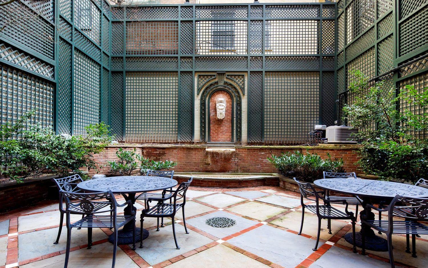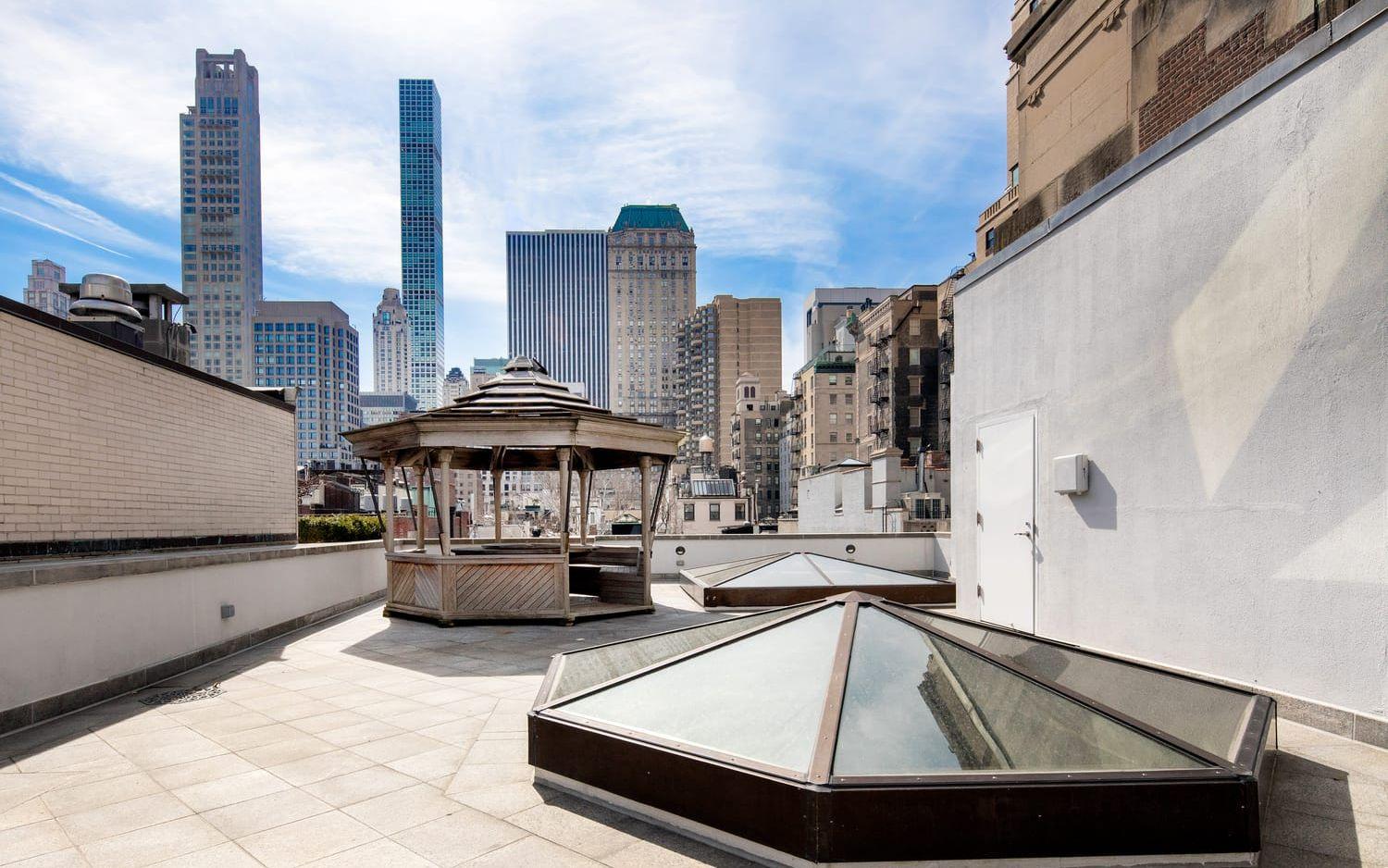 Vill man koppla av ute och lapa sol är exteriören på nästan 300 kvadratmeter. Där finns en trädgård på drygt 90 kvadratmeter, en balkong som löper längs med hela husets bredd, och en takterrass med ett lusthus som har utsikt över välkända Fifth Avenue.