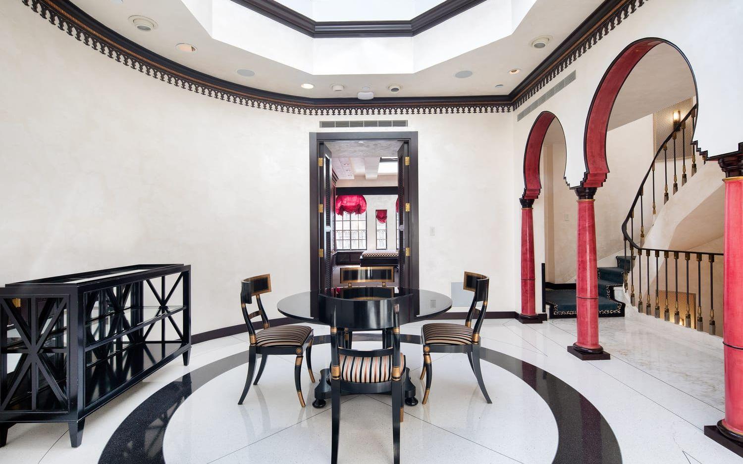 På bottenvåningen ligger en matsal, ett frukostrum och ett kök. Direkt från köket går man ut i sin egna lilla trädgård och uteplats med växter och en fontän. När man går in genom den stora entrén kommer man in i en pampig hall med stora pelare, marmorgolv, kristallkrona och en leopardmönstrad trappa. Vill man inte gå mellan våningarna finns där en hiss.