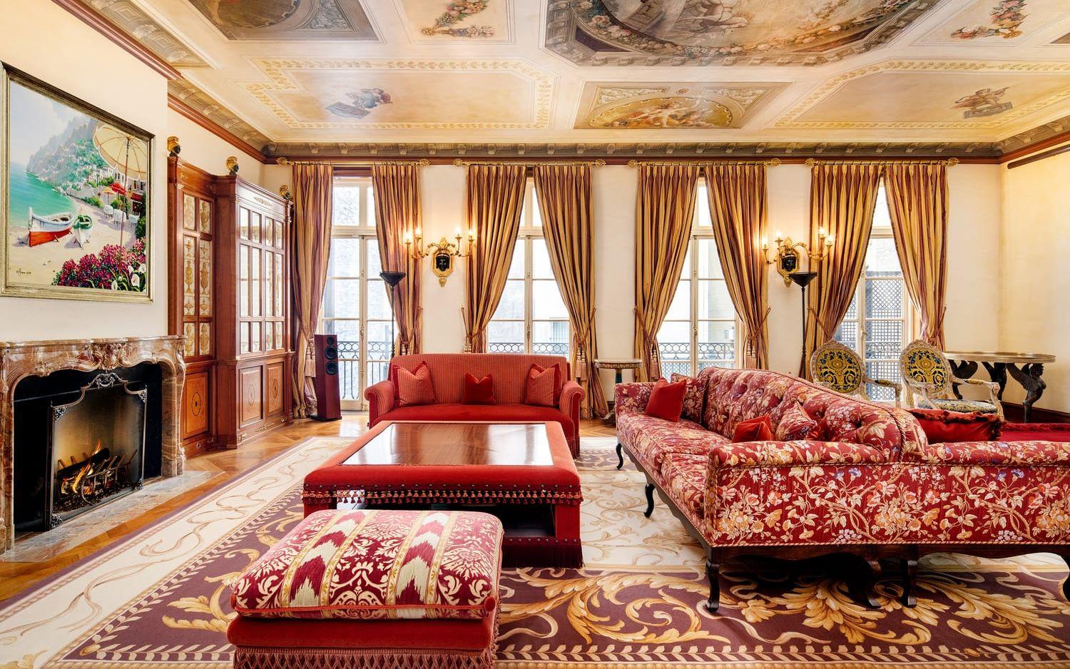 Hela bostaden är på 1 300 kvadratmeter, har 17 rum, varav sju är sovrum, kan bli nio. Utöver det finns det tio badrum, varav ett har en jacuzzi som är klädd i Versacemönstrad mosaik.