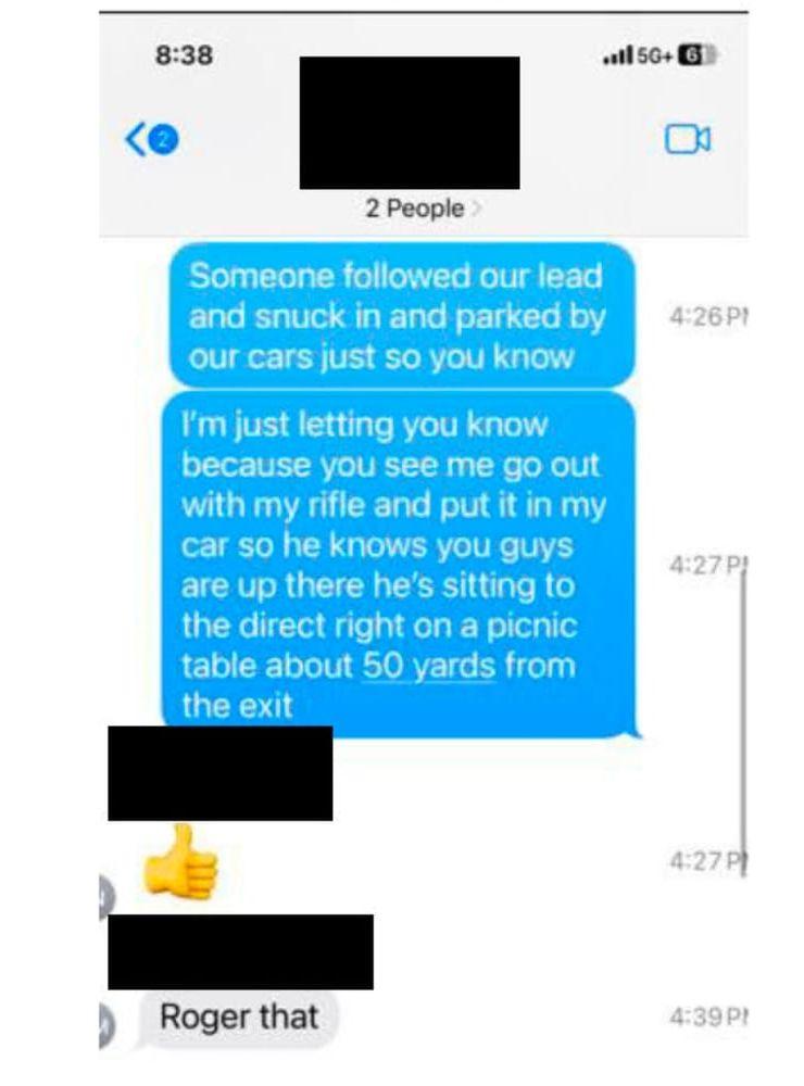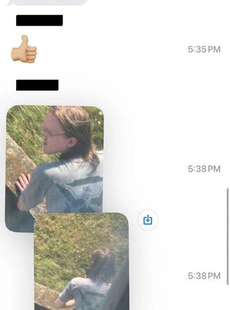17.38 skickar den lokala prickskytten ett meddelande om vad han sett till en gruppchatt, som ska ha inkluderat den lokala polisstyrkan. Han delade också ett par bilder som han tagit på 20-åringen.