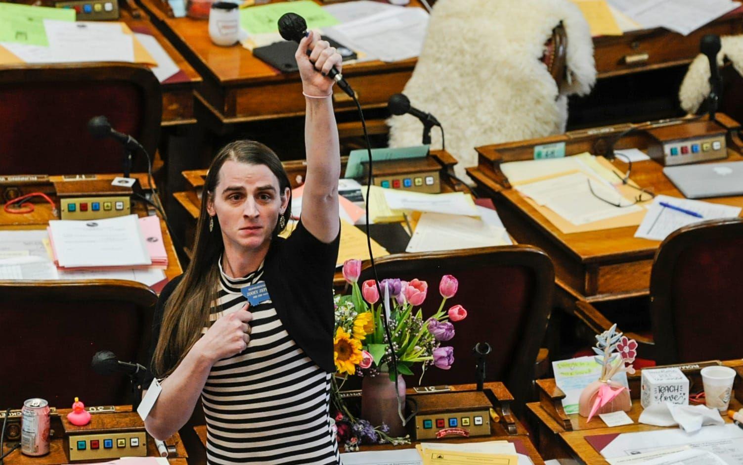 Den republikanska talmannen ska ha sagt till Zooey Zephyr att hon inte fick lov att sitta på bänken och en säkerhetsvakt ska ha hotat med att flytta den. Till sist fick hon ändå sitta kvar, varpå hon deltog och röstade i mötet som hölls.