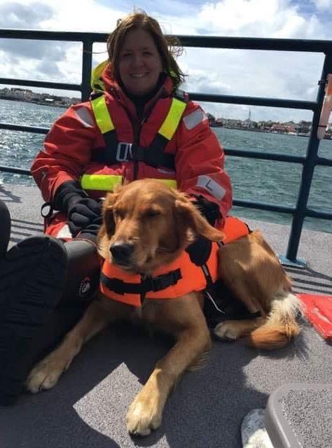 Hon berättar att Freya har visat sig vara oerhört positiv inför det nya jobbet som sjöräddningshund.