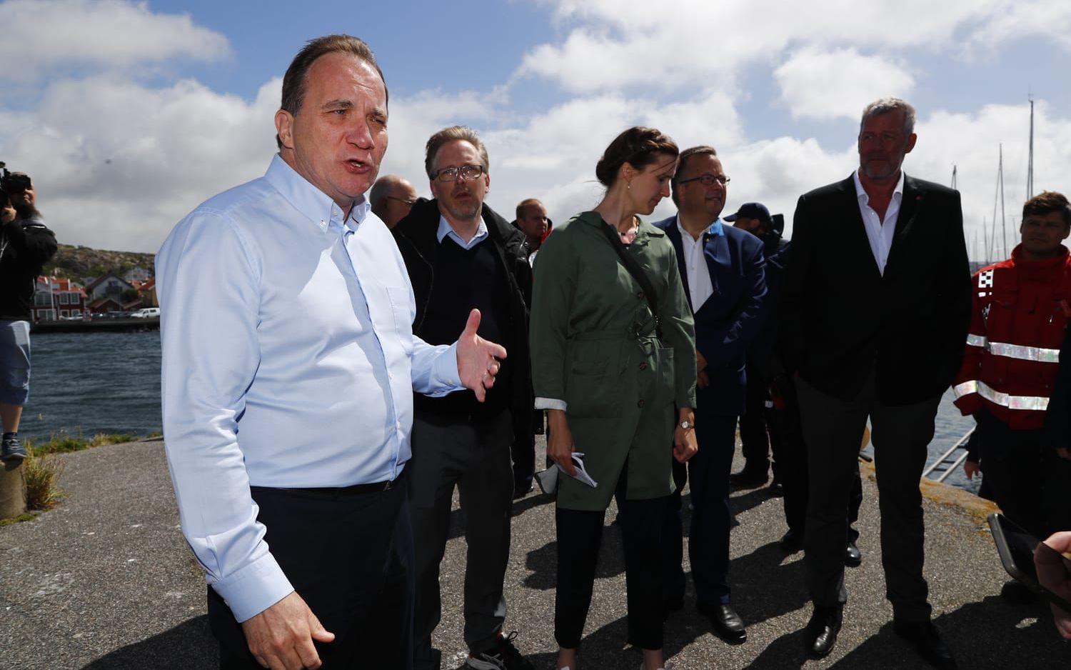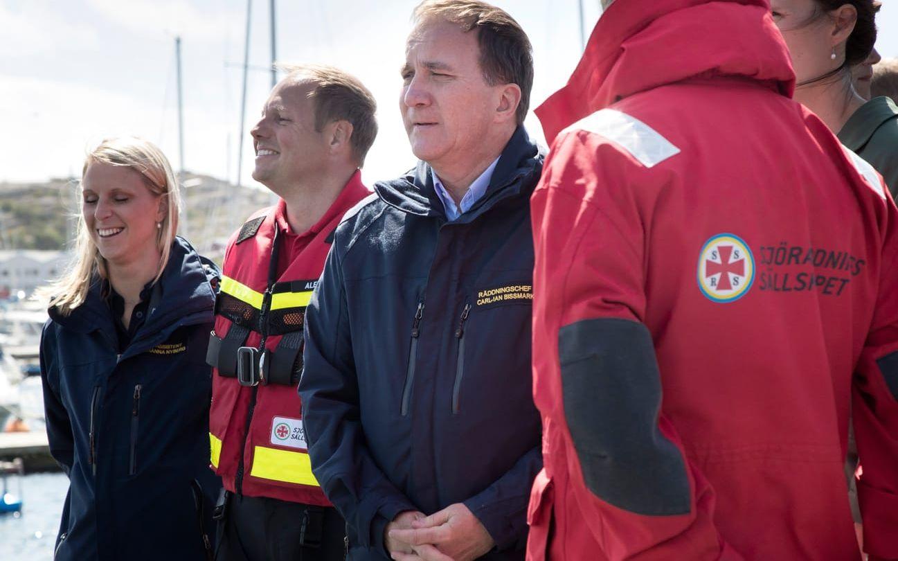 I år har statsminister valt att nobba Almedalsveckan för att istället besöka tio mindre orter runt om i landet. Först på tur var Skärhamn, där statsministern fick delta i en simulerad samverkansinsats mellan kustbevakningen, sjöräddningen och räddningstjänsten. Från piren i Skärhamn fick Löfven se två personer räddas från en brinnande båt.