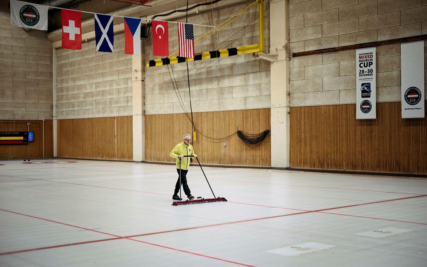Det är knappt 13 grader i curlinghallen på Hisingen. Isen glänser dovt under lamporna, avfuktarna brummar i bakgrunden och flaggor från flera olika länder hänger i taket. Här har lag från USA, Skottland, Indien och Turkiet spelat. Till och med Sveriges guldmedaljörer har tävlat i hallen – innan de klev in på den olympiska isen.