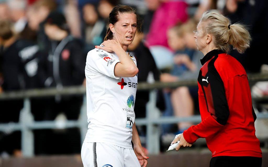 –Hon är utredd i nacken och huvudet utan att man har hittat någon strukturell skada. Det är inget avvikande. Hon har övningar, ett särskilt program, för sin nacke och är i gång så mycket hon kan med jogg och sjukgymnastik. Men ingen bollträning än, säger Svejme.