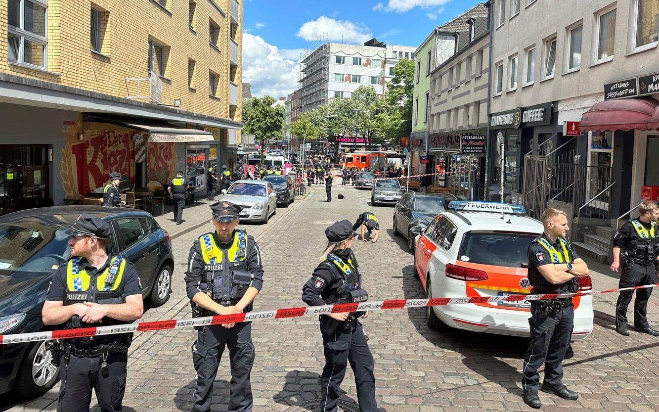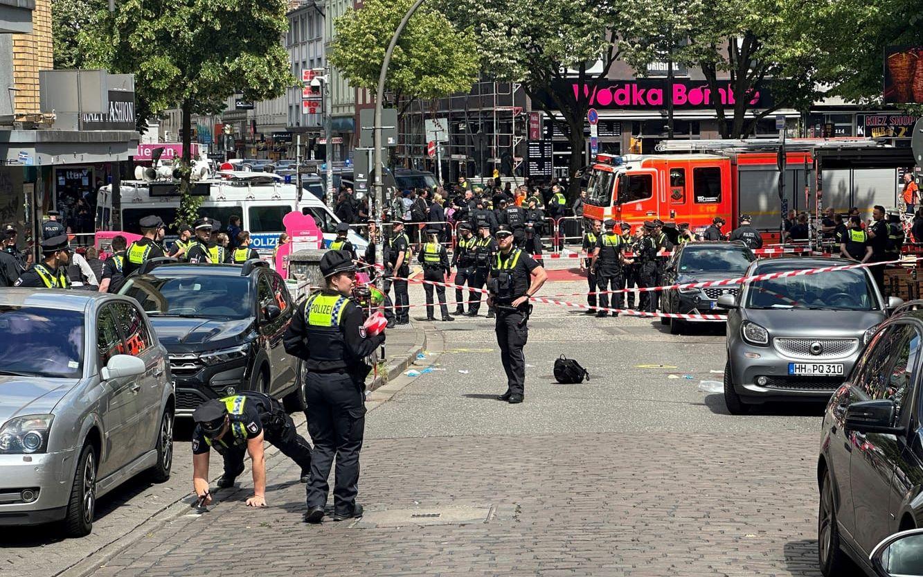 Polisen använde först pepparsprej och avlossade sedan ett varningsskott. Därefter ska flera skott ha avlossats innan gärningsmannen föll till marken. På X skriver polisen i Hamburg att gärningsmannen skadats och får vård, enligt Bild efter att ha skjutits i benet.