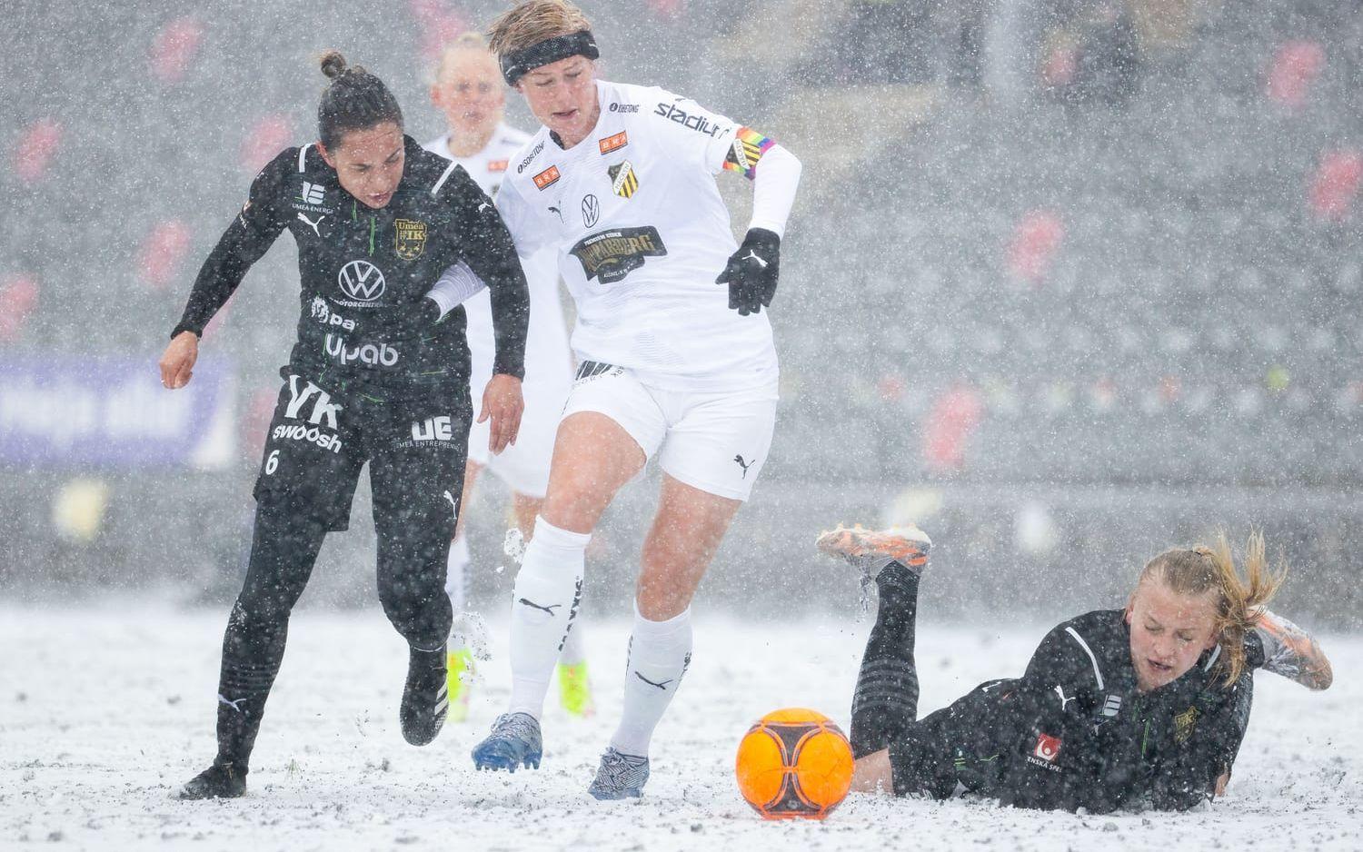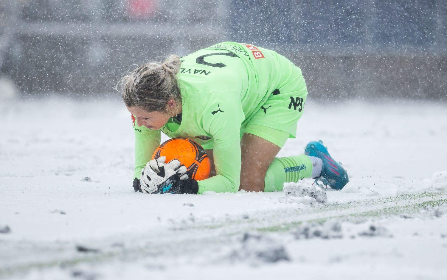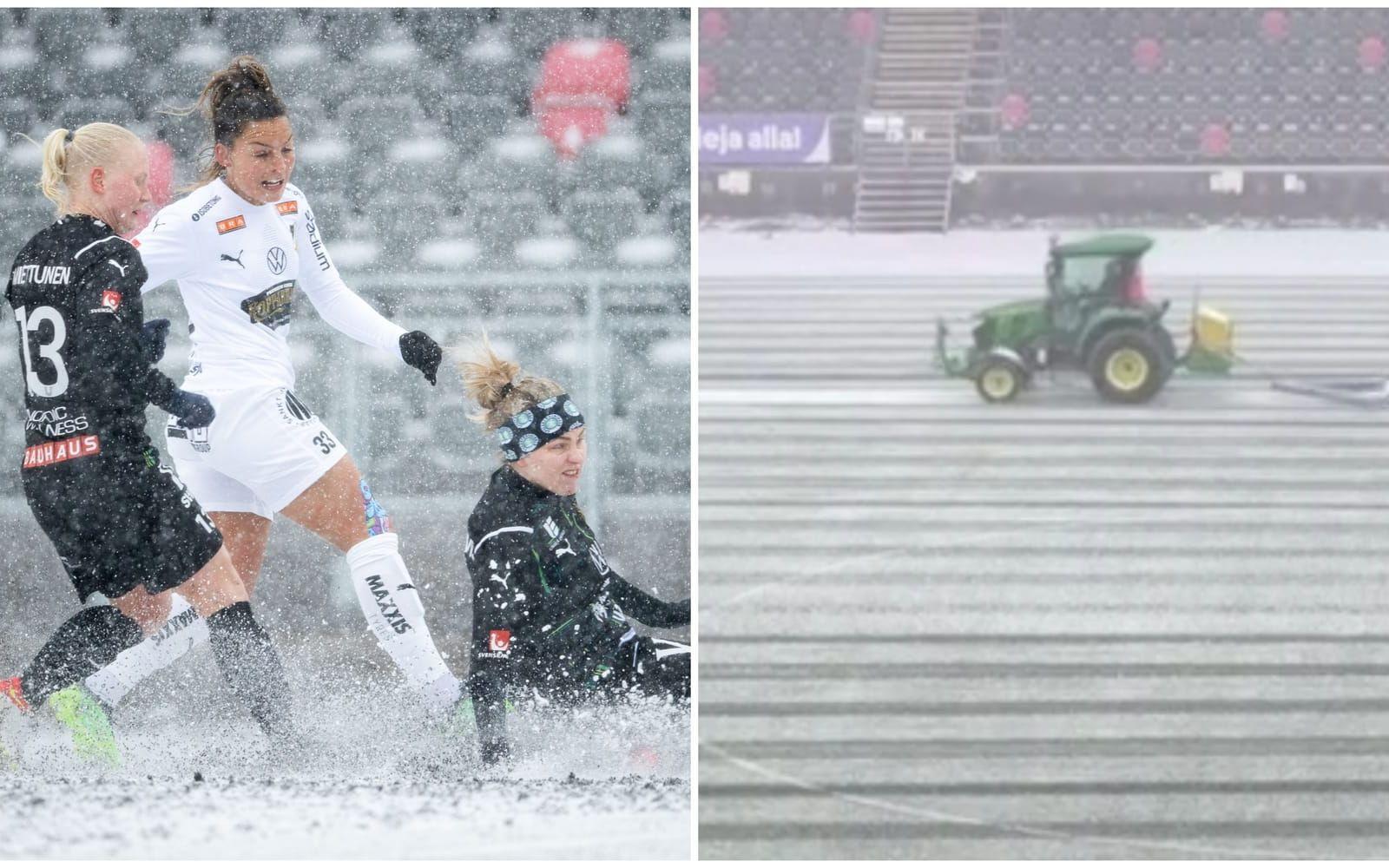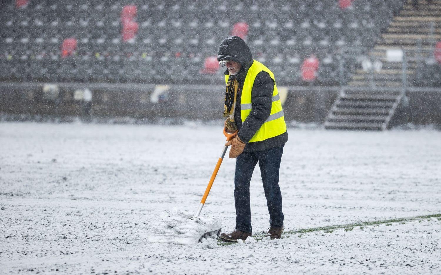 För under uppvärmningen märkte spelarna i Häcken att det började snöa.