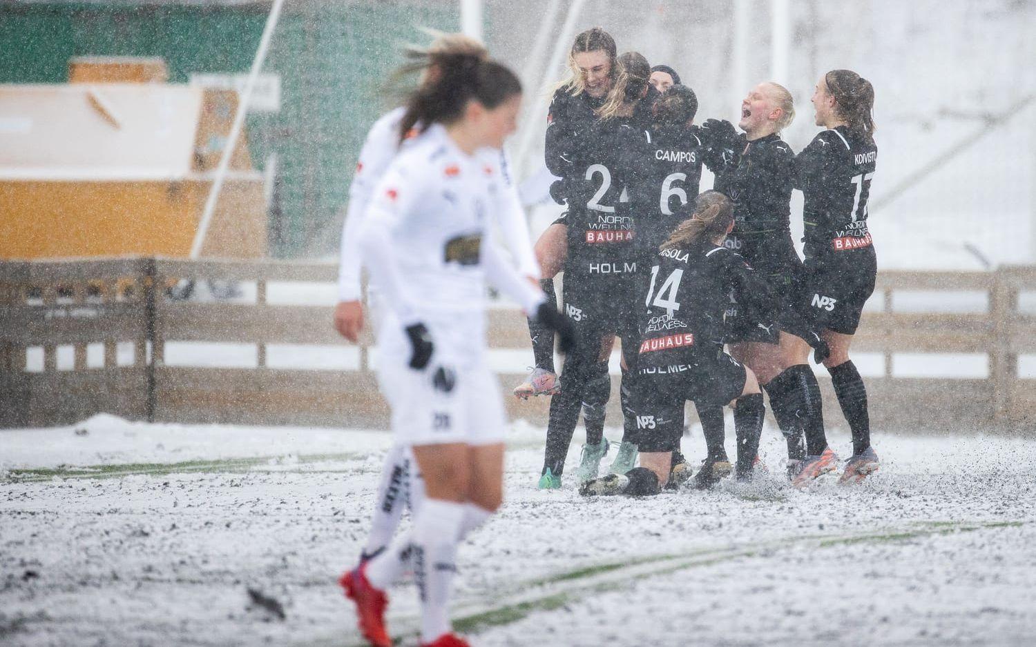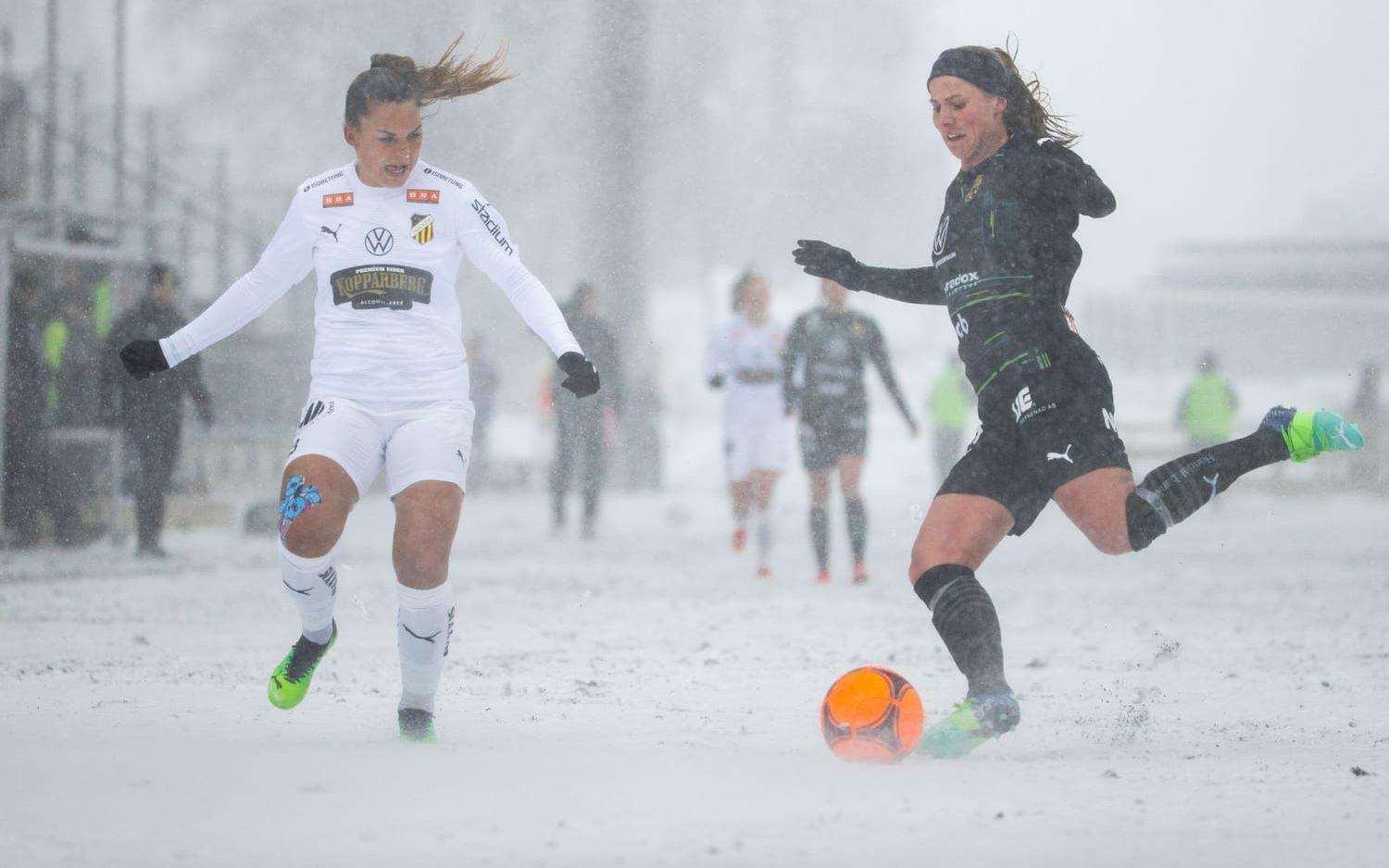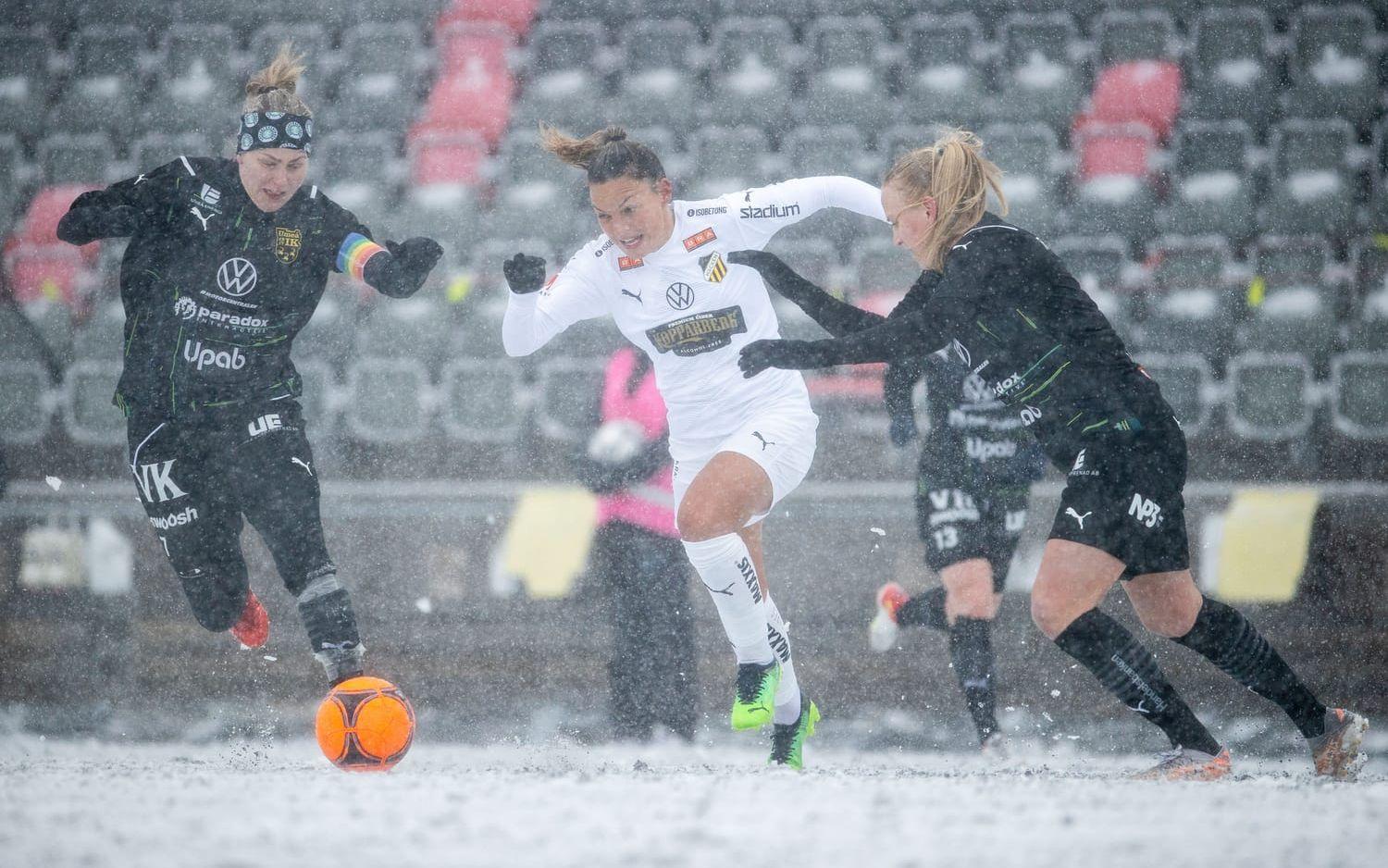 I den första halvleken var det samma förutsättningar och då passade Johanna Rytting Kaneryd på att göra 1–0 till Häcken.