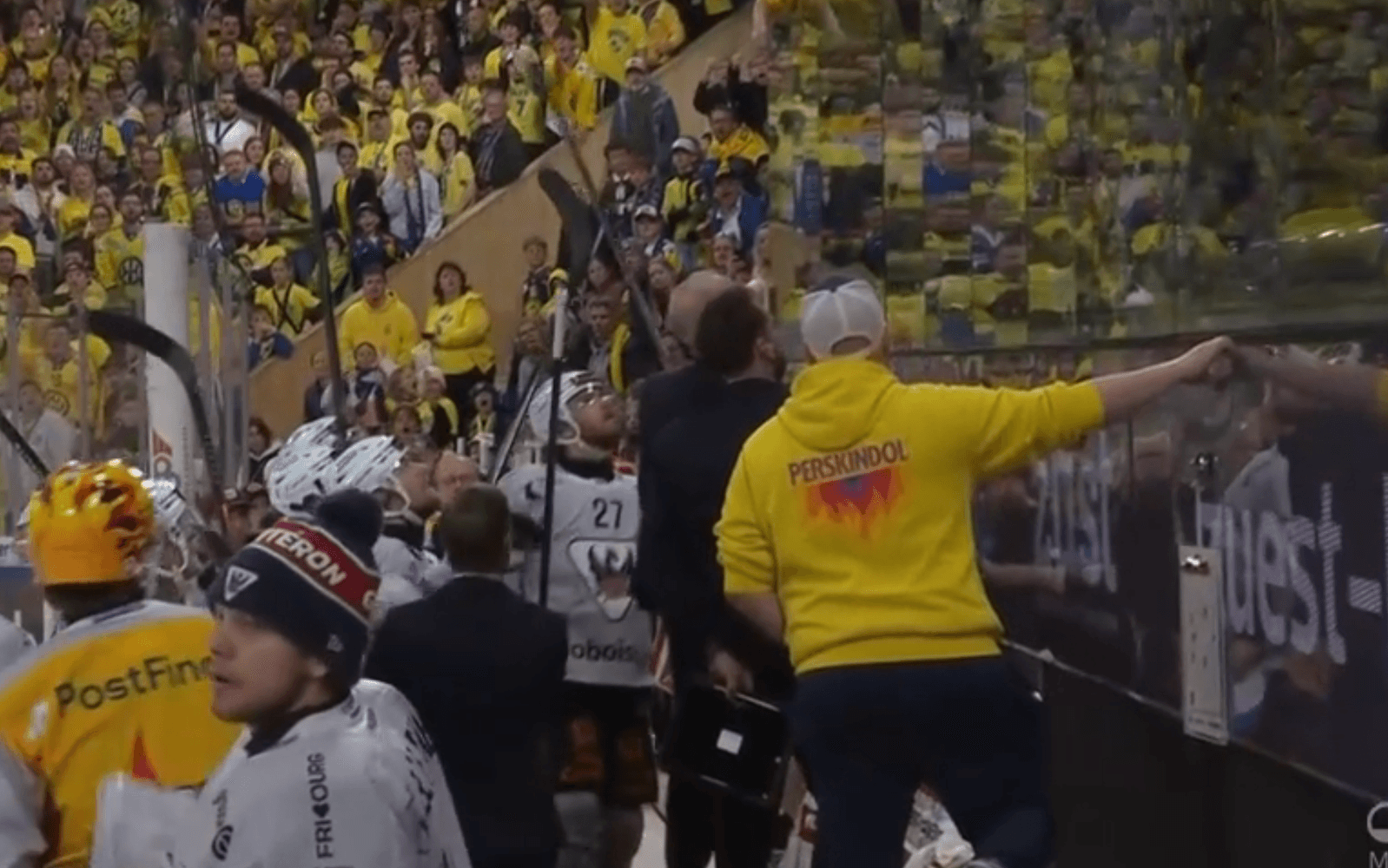 Supportern blev rasande och hängde sig över plexiglaset över Fribourgs bänk och ska ha pekat på Rönnberg och ropat mot svensken och hans spelare.