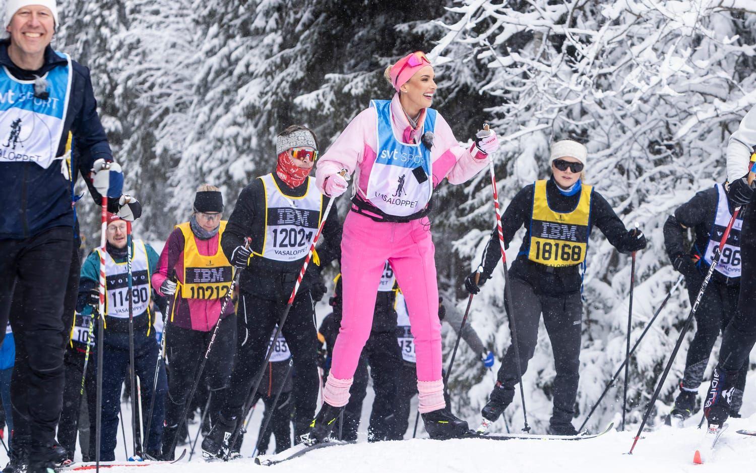 Med minsta möjliga marginal klarade hon reptiden i Mångsbodarna. Sportbladet rapporterar att influencern sprang in precis innan repet skulle dras med skidorna i famnen.