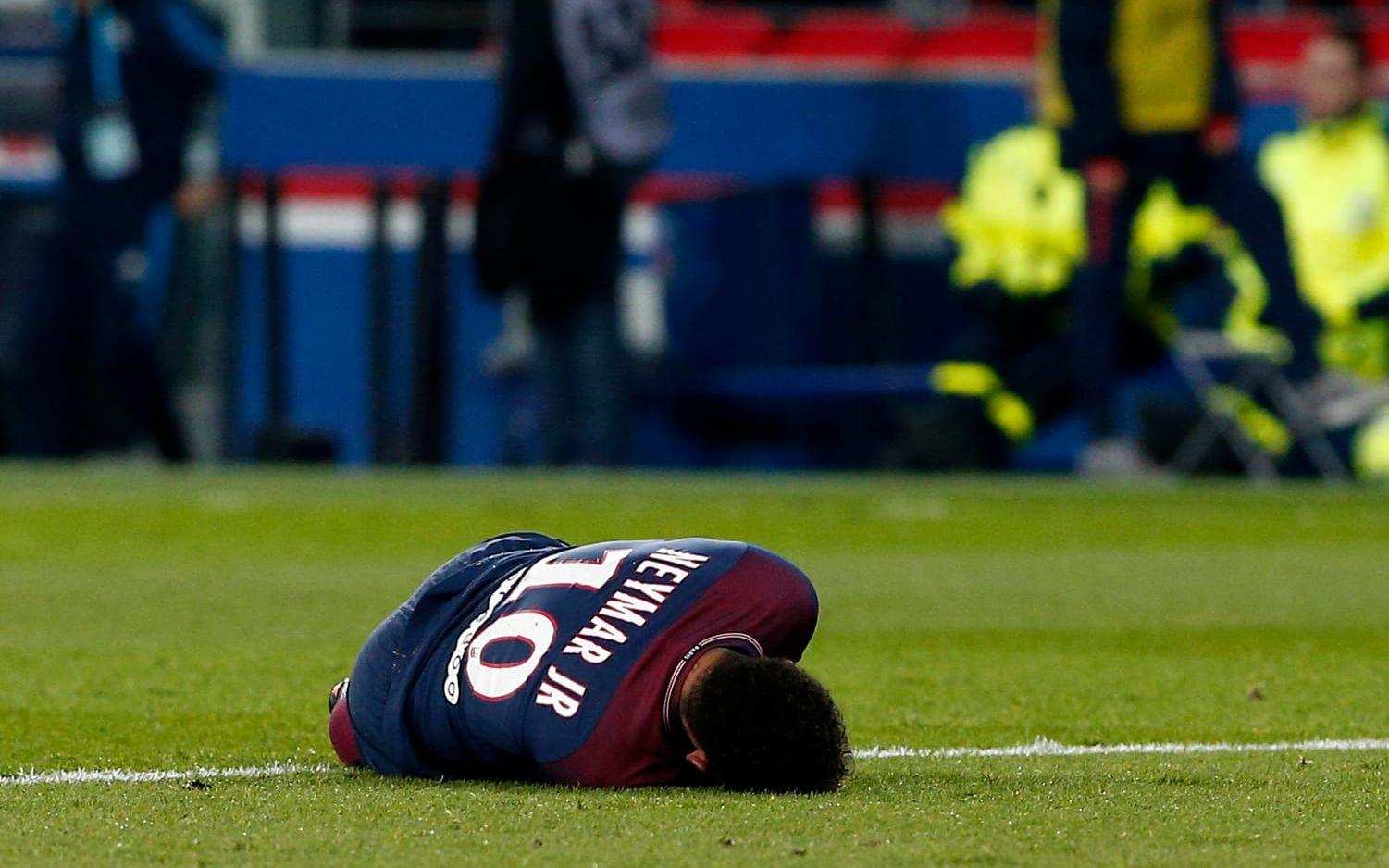 Neymar trampade snett och fick bäras ut på bår i slutet av matchen. Det visade sig att han fått en spricka i det femte mellanfotsbenet samt en stukad fot.
